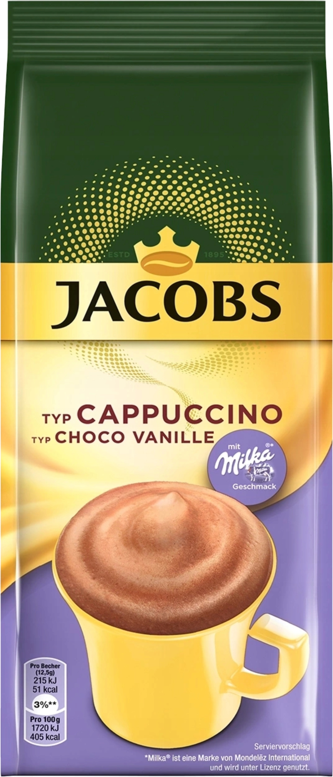 jacobs cappuccino choco vanille - отличное предложение для любителей тонкого бархатного кофе с молочной пеной и чистыми нотами шоколада и ванили. Это идеальное сочетание ароматического кофе Jacobs с кремовой сладостью, которая заставляет каждую чашку становится настоящим моментом удовольствия. Все, что вам нужно, это горячая вода, чтобы приготовить отличный капучино с уникальным вкусом и аппетитной пеной за несколько мгновений. Выпьет