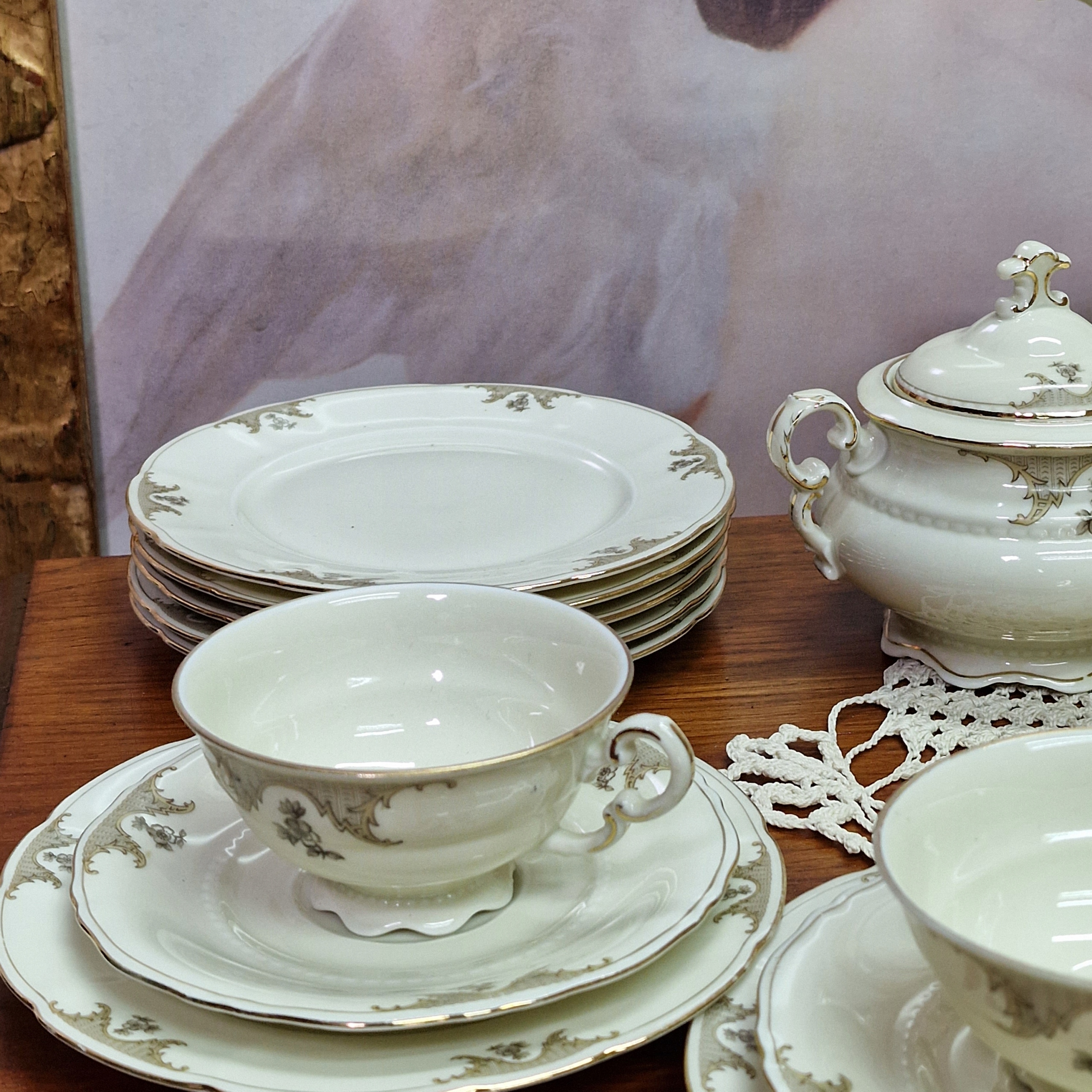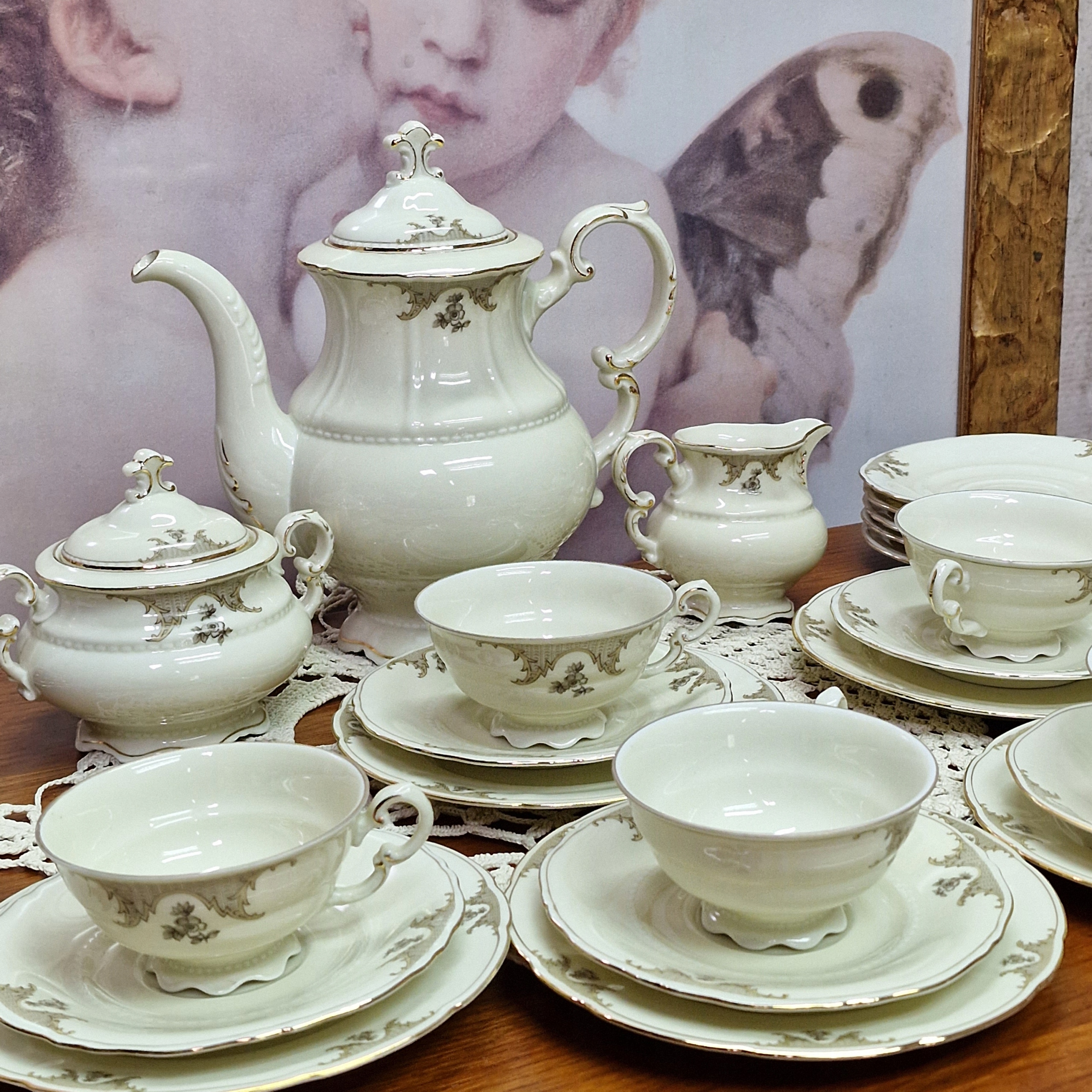 Сервировка из кремового фарфора с позолотой