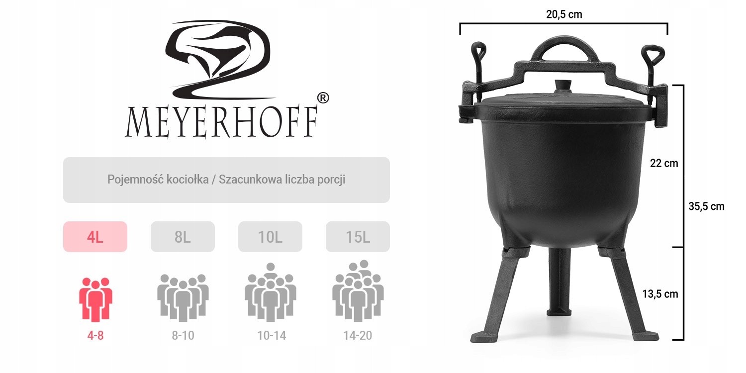 Оригинальный казан Мейергофа изготовлен из чугунного сплава высочайшего качества, устойчивого к самым высоким температурам. Эта компания первой применила специальное вентиляционное отверстие в крышке, которое регулирует давление внутри котла, что делает его 100% безопасным. Внутри он покрыт термостойкой эмалью, которая защищает и защищает внутреннюю часть казана, облегчая его мытье и уход (нет необходимости проводить пропитку после каждого использования). Казан может стоять прямо на огне, а благодаря удобной ручке его также можно подвешивать над огнем. Также изделие имеет съемные ножки, поэтому казан можно разместить как в камине, так и непосредственно в очаге. Благодаря тиснению на крышке вы можете быть уверены, что покупаете оригинальный и безопасный товар.