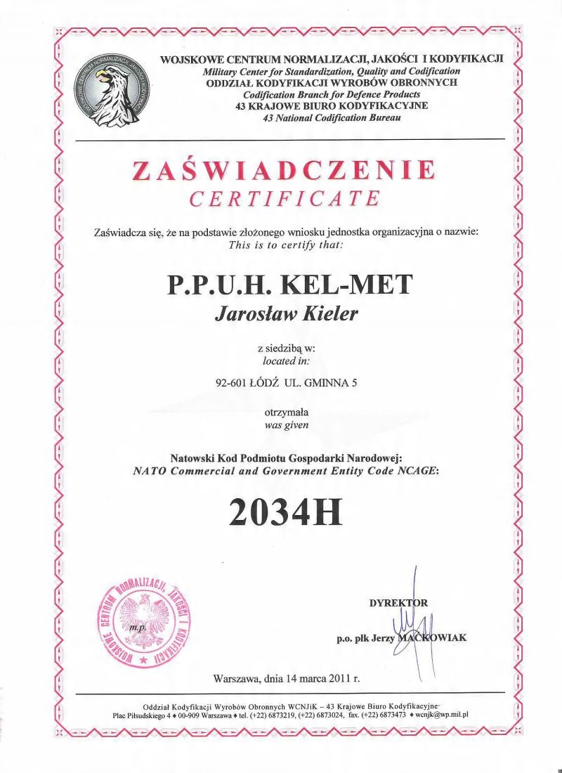 В 2011 году Военный центр стандартизации, качества и кодификации присвоил код коммерческой и государственной организации НАТО NCAGE: 2034H. Наручникам был присвоен инвентарный номер НАТО — NSN (NATO Stock Number).