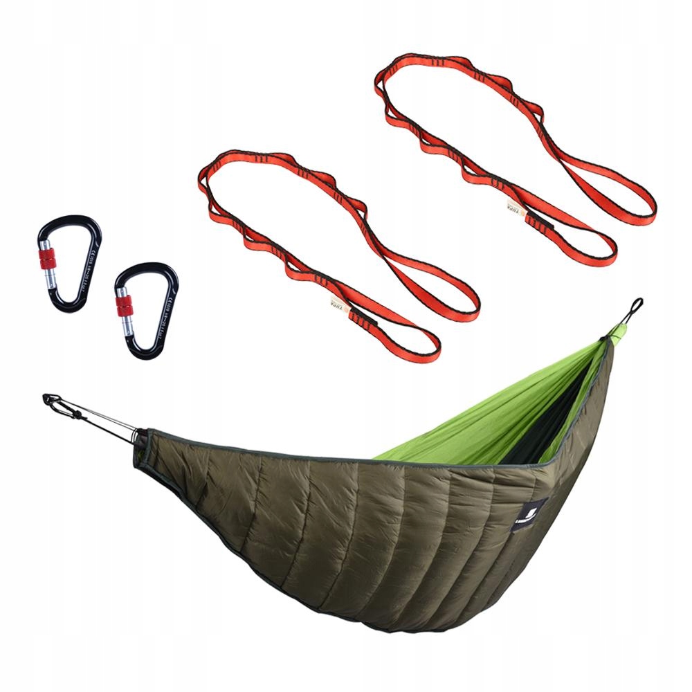 В комплект входит 1 чехол для гамака, 2 пружинных карабина и 2 ремня для гамака.
