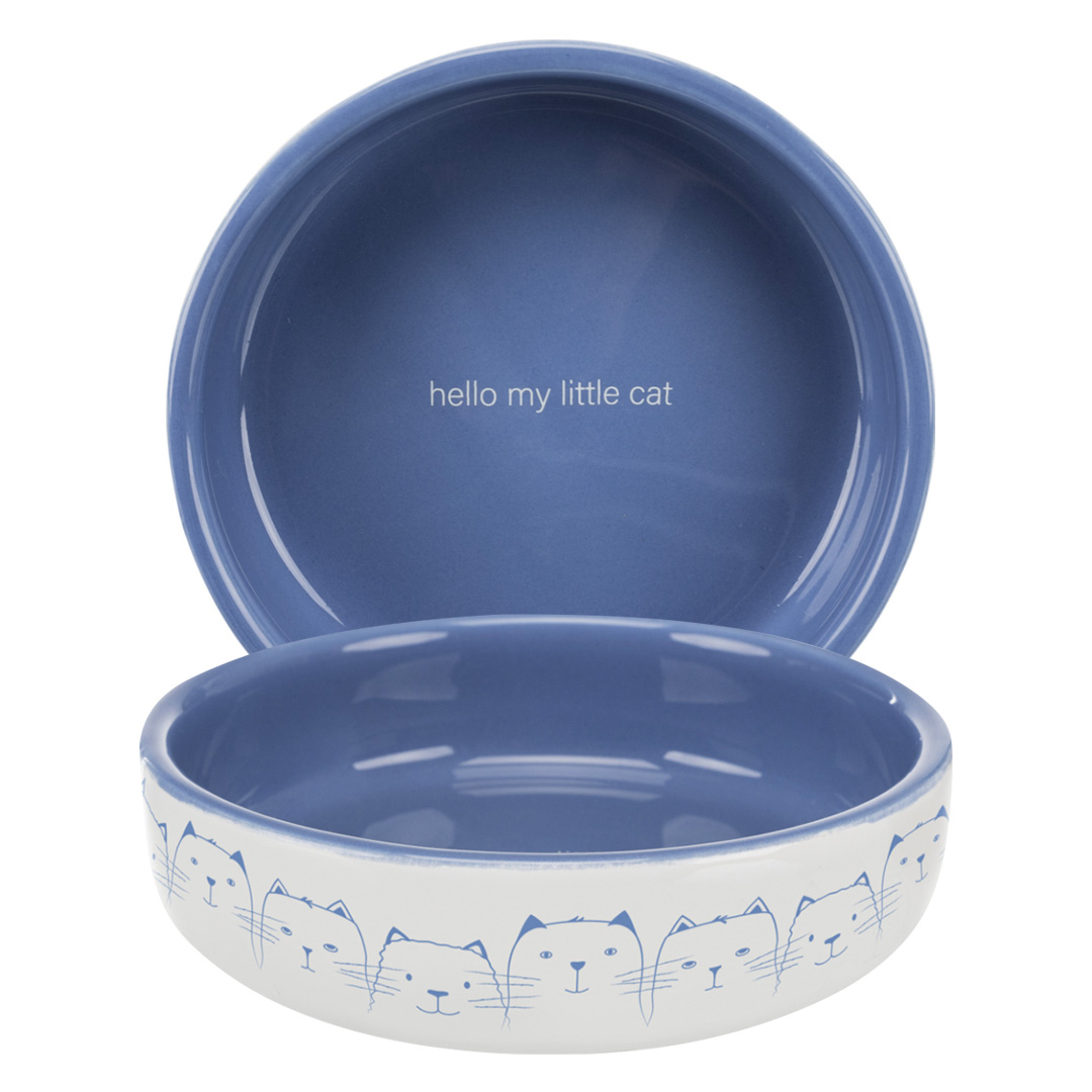 Чаша, сделанная из высококачественной керамики, украшенной синим интерьером и надписью: «Привет, моя маленькая кошка» (добро пожаловать мою кошечку).