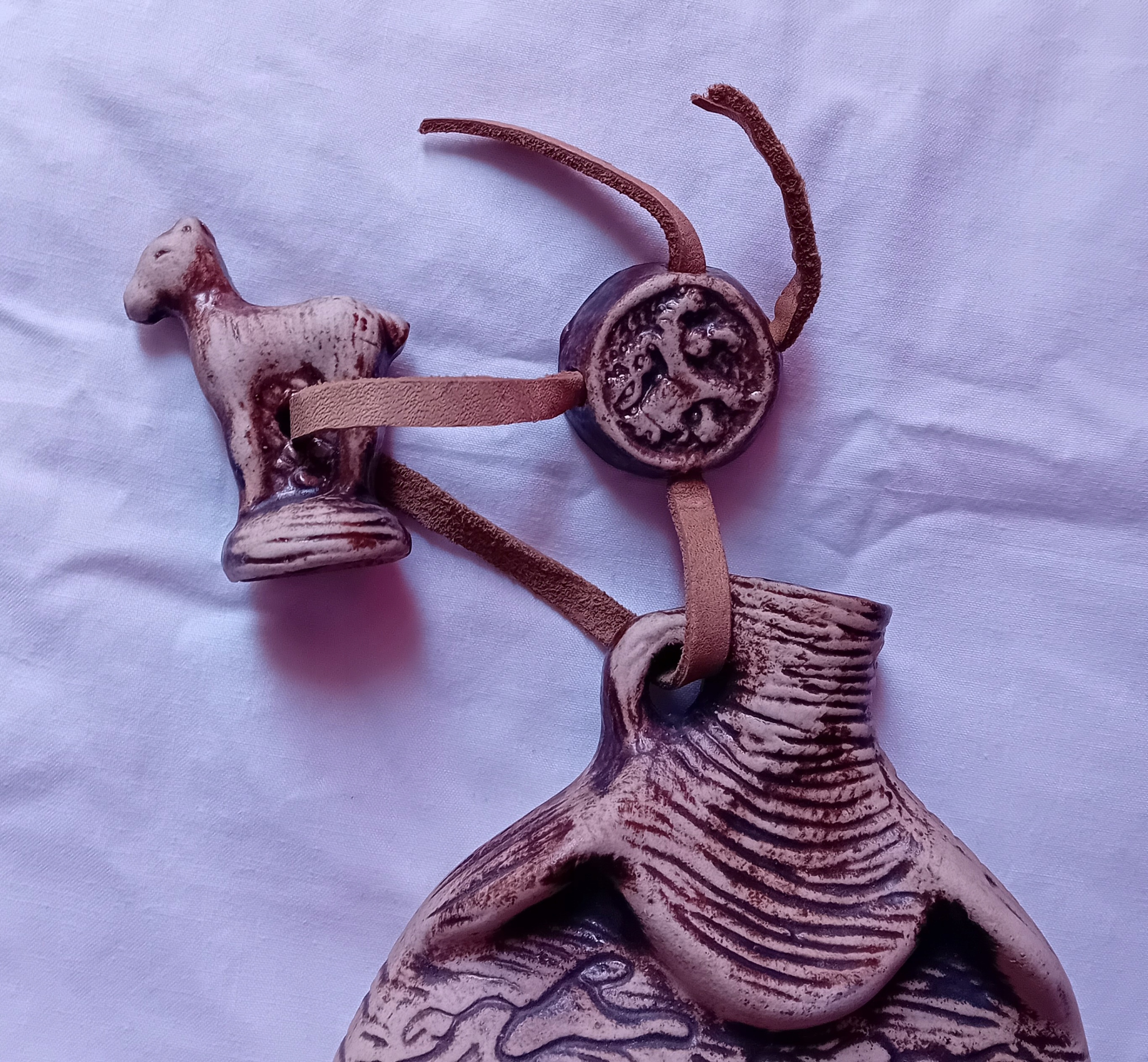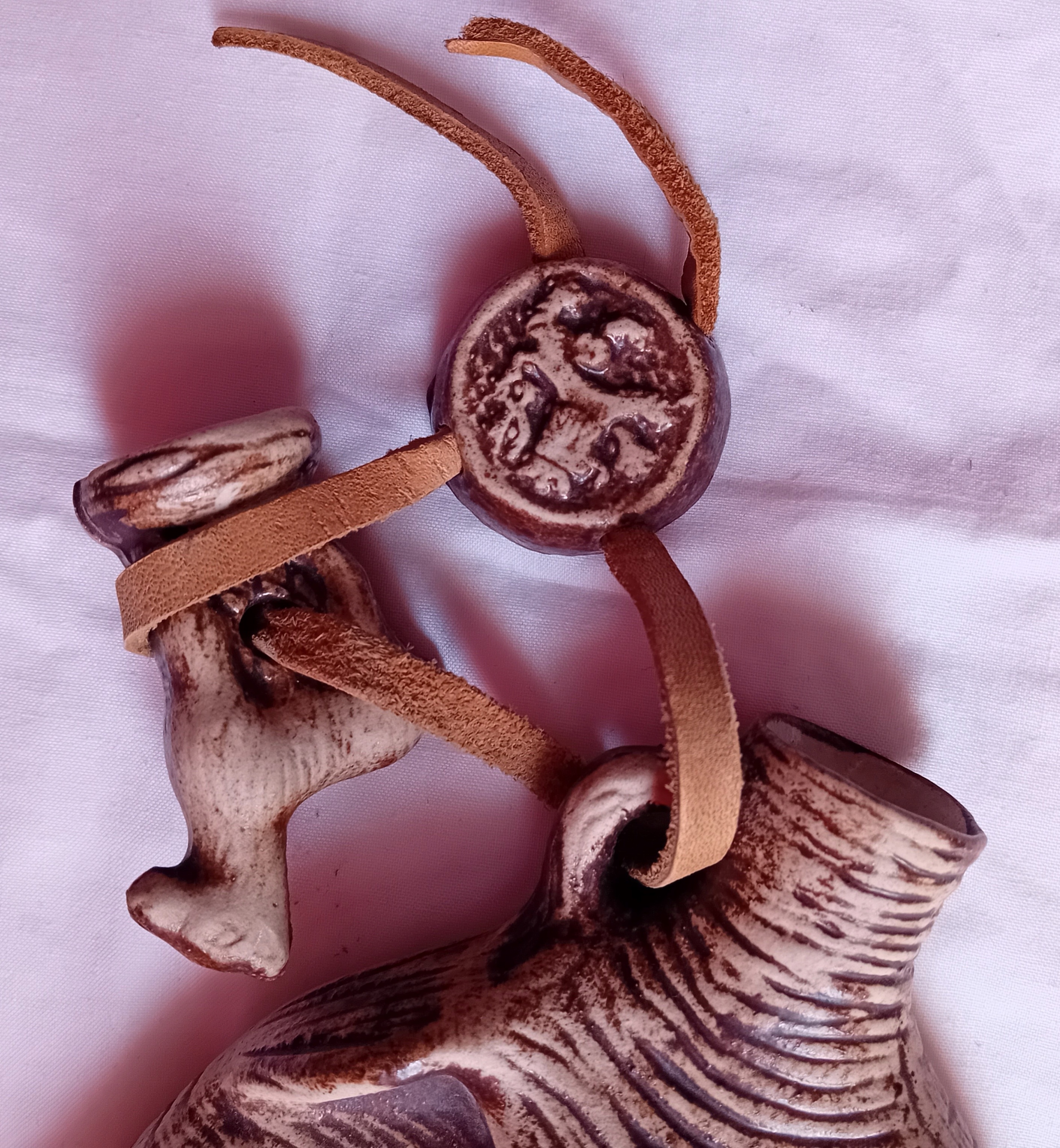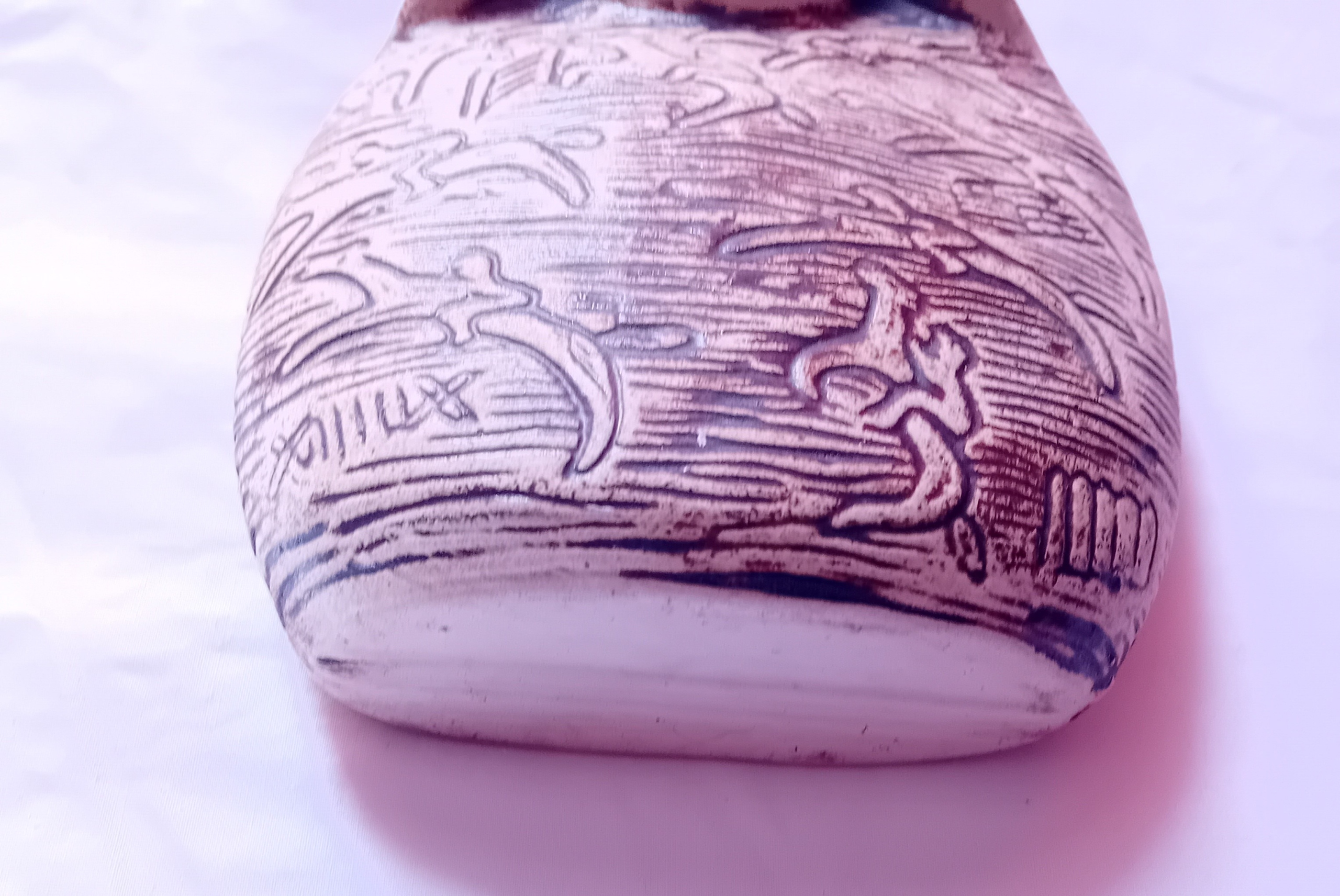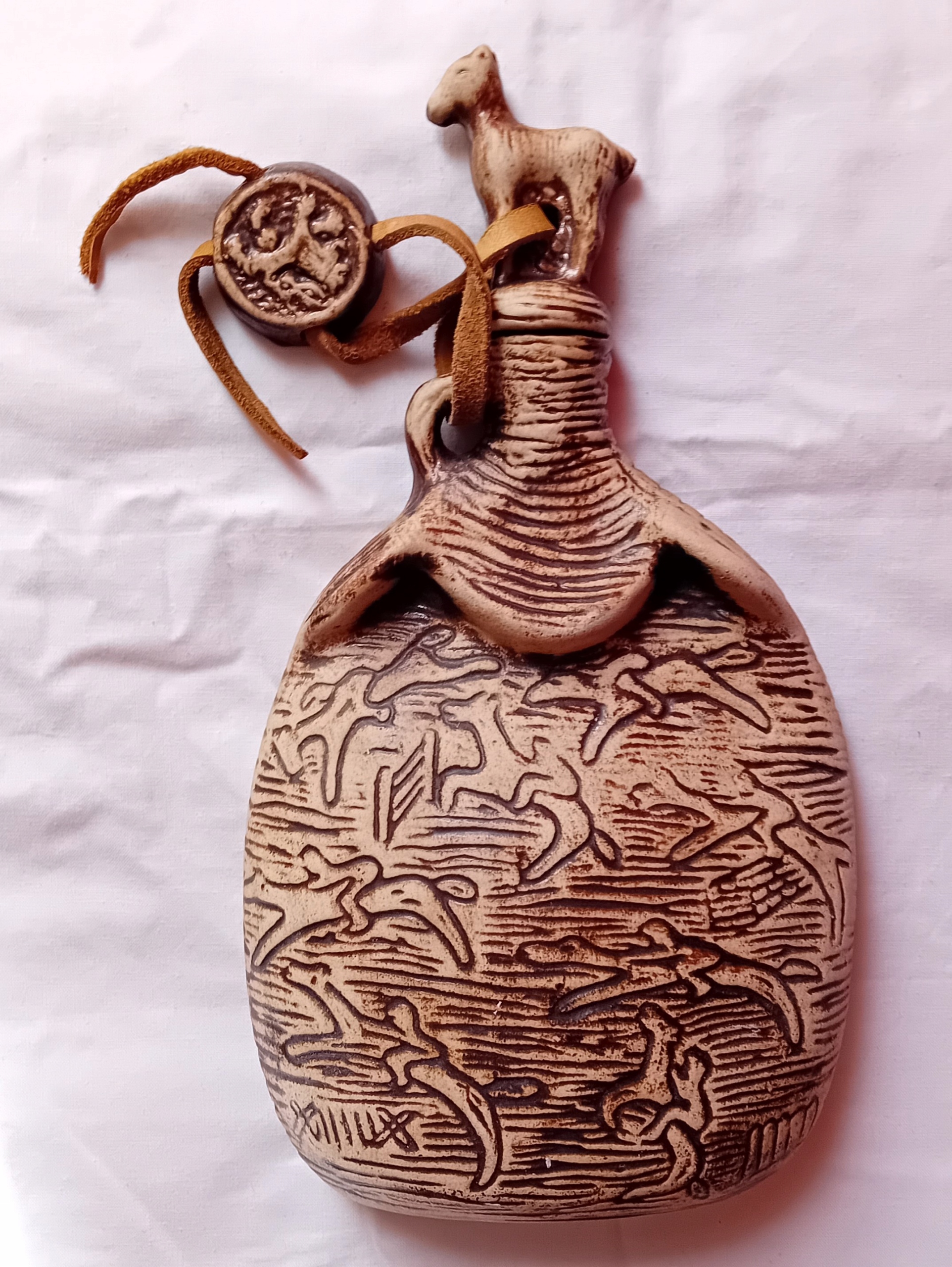 Продаю неглазурованный керамический графин с конным декором. Высота 18 см. , с пробкой 26,5 см. Размеры основания 10,5 х 5 см. Ширина в самом широком месте 14 см. Хорошее состояние, без повреждений. Не хватает только натуральной пробки, которая крепилась у основания пробки задней бабки. Две пробки крепятся к графину ремешком из натуральной кожи.