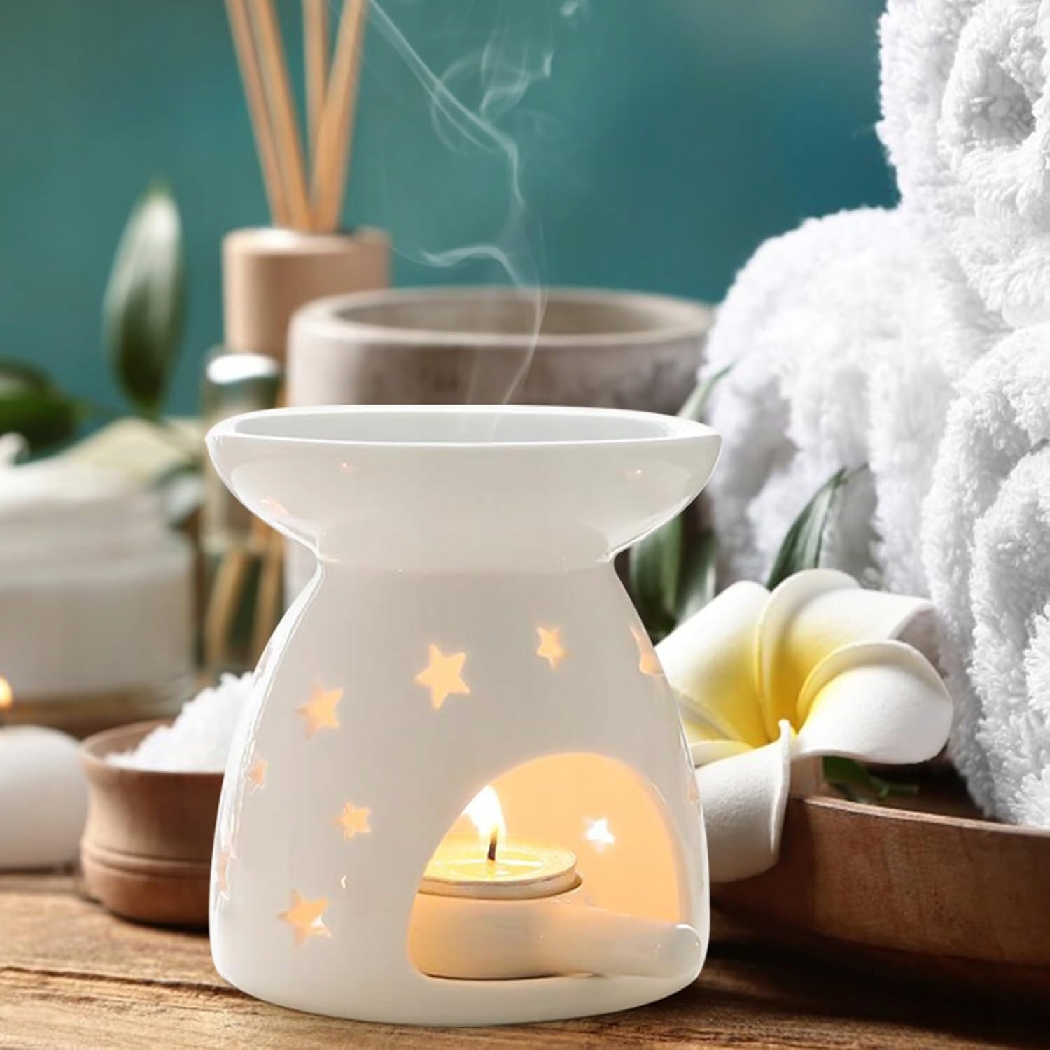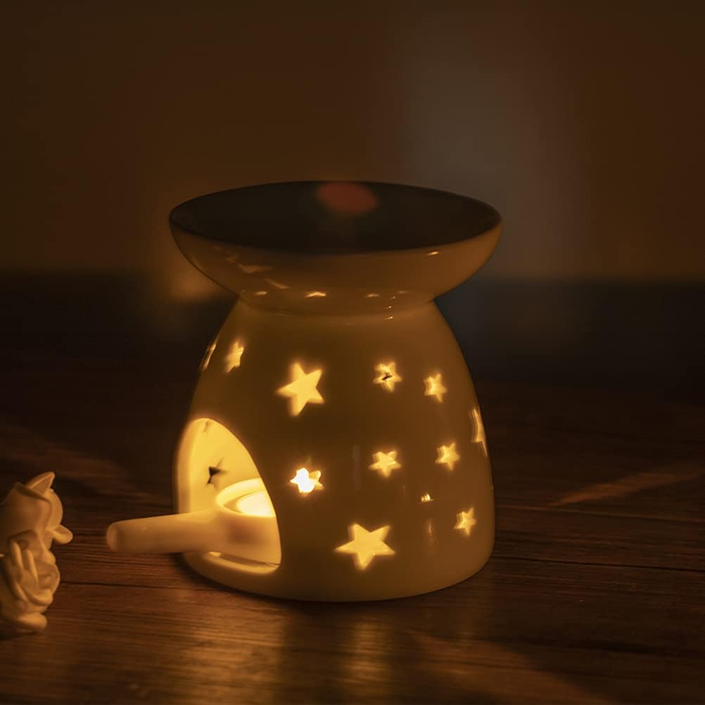 ✴️ Высококачественная глина ручной работы с полым цветочным узором, пропускающим свет, диффузор гладкий, устойчив к высоким температурам и легко чистится. чистота