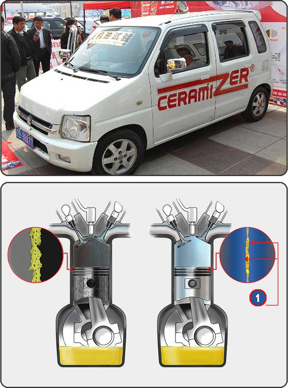 Керамизер не следует путать с загустителями бутилированного масла. Загустители лишь временно маскируют износ двигателя (дым, расход масла). Обычно через несколько сотен километров чары проходят. В отличие от них, у керамизеров есть веские аргументы. Один из них — тест 500 км без капли масла (см. видео на YouTube: «Тест керамизера, езда на Honda Civic без масла»). Двигатель автомобиля осмотрел независимый эксперт-автомеханикЯцек Хойнацкий. Несмотря на пройденные за время теста 562 км без масла в двигателе, втулки не получили больших повреждений, чем другие на автомобилях с аналогичным пробегом. Кроме того двигатель до керамизации имел более слабую компрессию в цилиндрах. После керамиизации практически вернулся к заводским значениям.