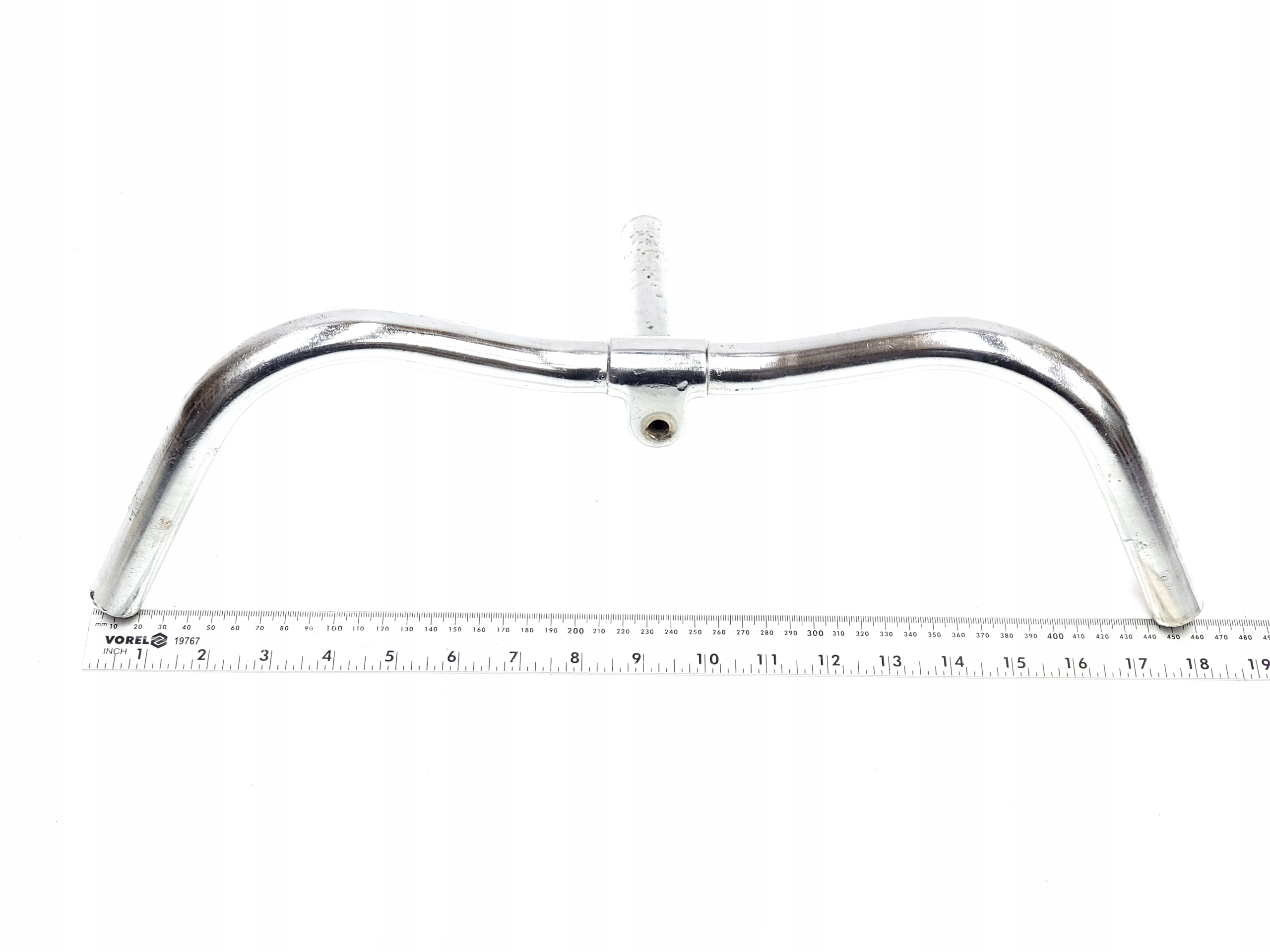 Мы предлагаем велосипедные рули ZZR Romet Mesko Łucznik в комплекте с кронштейном. Ширина руля: 46 см. Длина кронштейна: 16 см. Диаметр кронштейна: 21,95 мм. ДЕФЕКТ: кронштейн перегнут относительно руля.