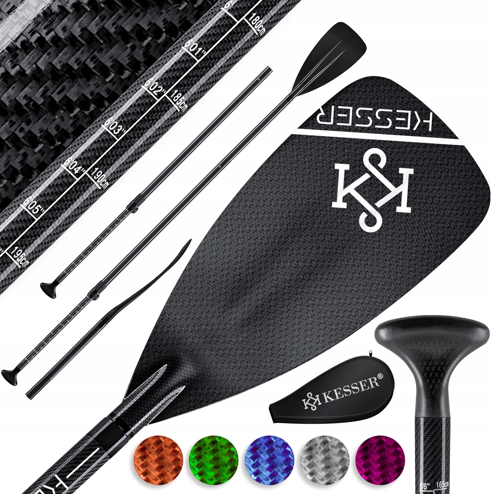 - Кесер SP Carbon Carbon Oar, изготовленный из прочного алюминия, стекловолокна и структуры PP, эргономичной Т-образной ручки, 3-часового весла, лезвия в дуге