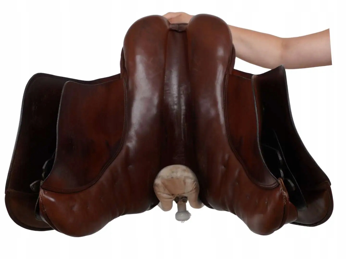 Седло, сделанное из высококачественной, натуральной кожи , устойчиво к повреждению и будет служить много лет, даже при интенсивном использовании. Расстояние между 32 делает седло для лошадей с более широкой конструкцией .