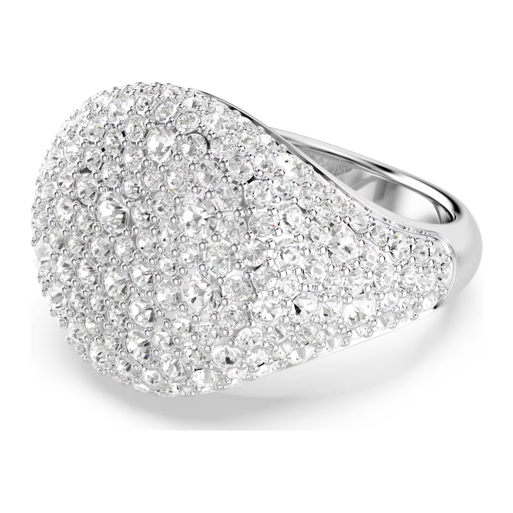 Это, украшенное созвездием кристаллов, светящееся кольцо с мотивом добавит великолепию любой стилизации. Кольцо с семейным покрытием создает великолепное выпуклое, покрытое бесцветными круглыми кристаллами разных размеров в снежном булыжнике. Накопление кристаллов, пульсирующих с великолепием, производит завораживающее впечатление, что делает это оригинальное и эффективное кольцо очарованием стилем