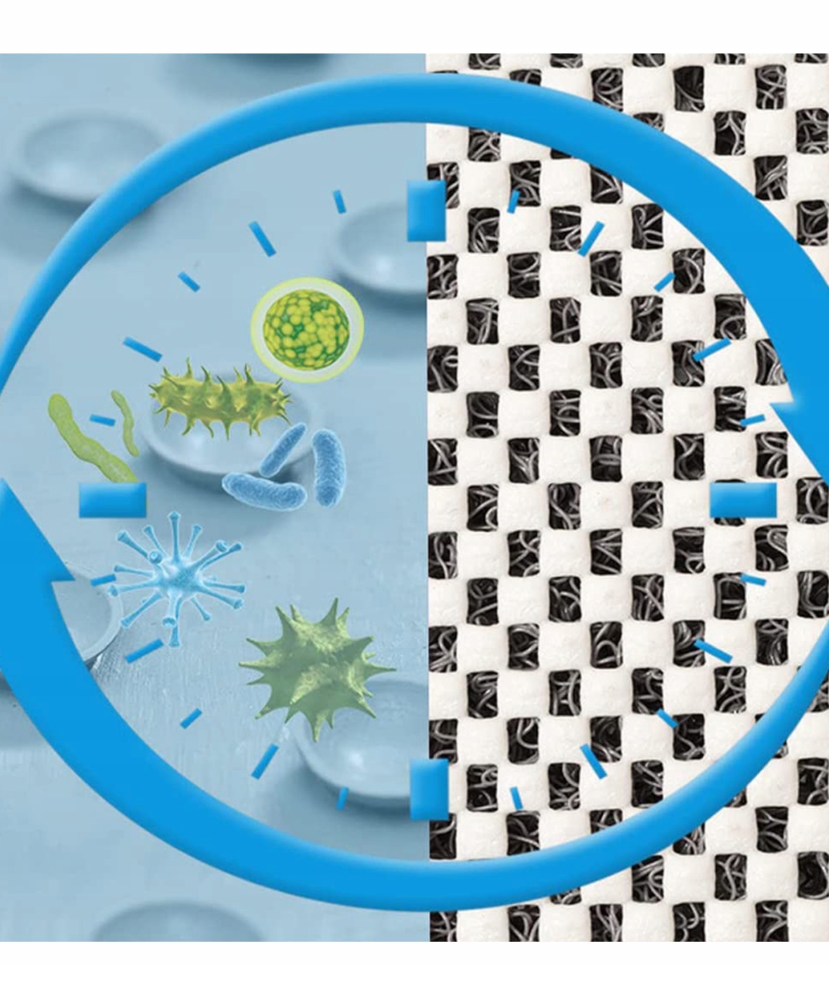 - Противоскользящий и прочный: изготовлен из прочного, не содержащего фталатов ПВХ пластика. Никаких присосок. В нем используется противоскользящий слой, который остается твердым, но при этом нежным на текстурированных поверхностях ванной комнаты. Вместо традиционных ковриков для ванной комнаты с трудноочищаемыми присосками, которые могут скользить и повредить ванну или пол, содрать отделку, сколоть краску.