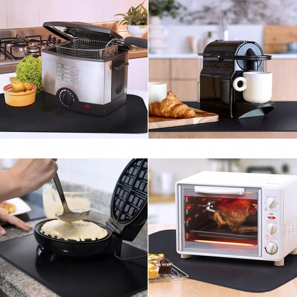 🔥Легкое перемещение приборов: Наш коврик для столешницы с Гладкое силиконовое покрытие позволяет легко перемещать тяжелую кухонную технику, не поднимая ее. Гладкая поверхность снижает сопротивление трению, что облегчает перемещение таких приборов, как блендеры, фритюрницы или соковыжималки. В то же время естественное трение обеспечивает безопасную устойчивость и сопротивление скольжению, надежно удерживая кухонную технику на месте.