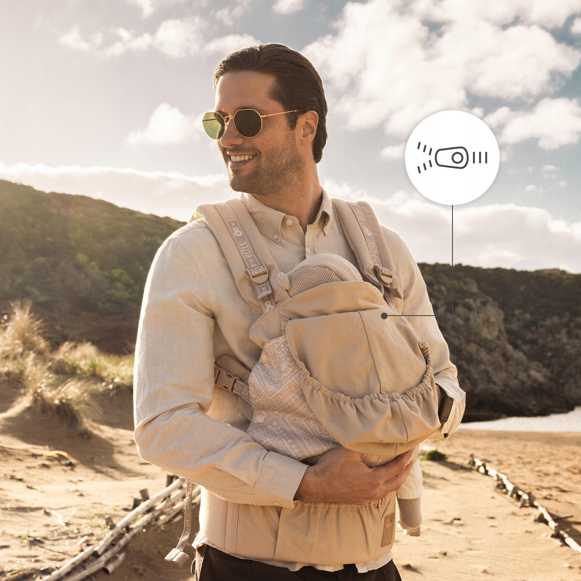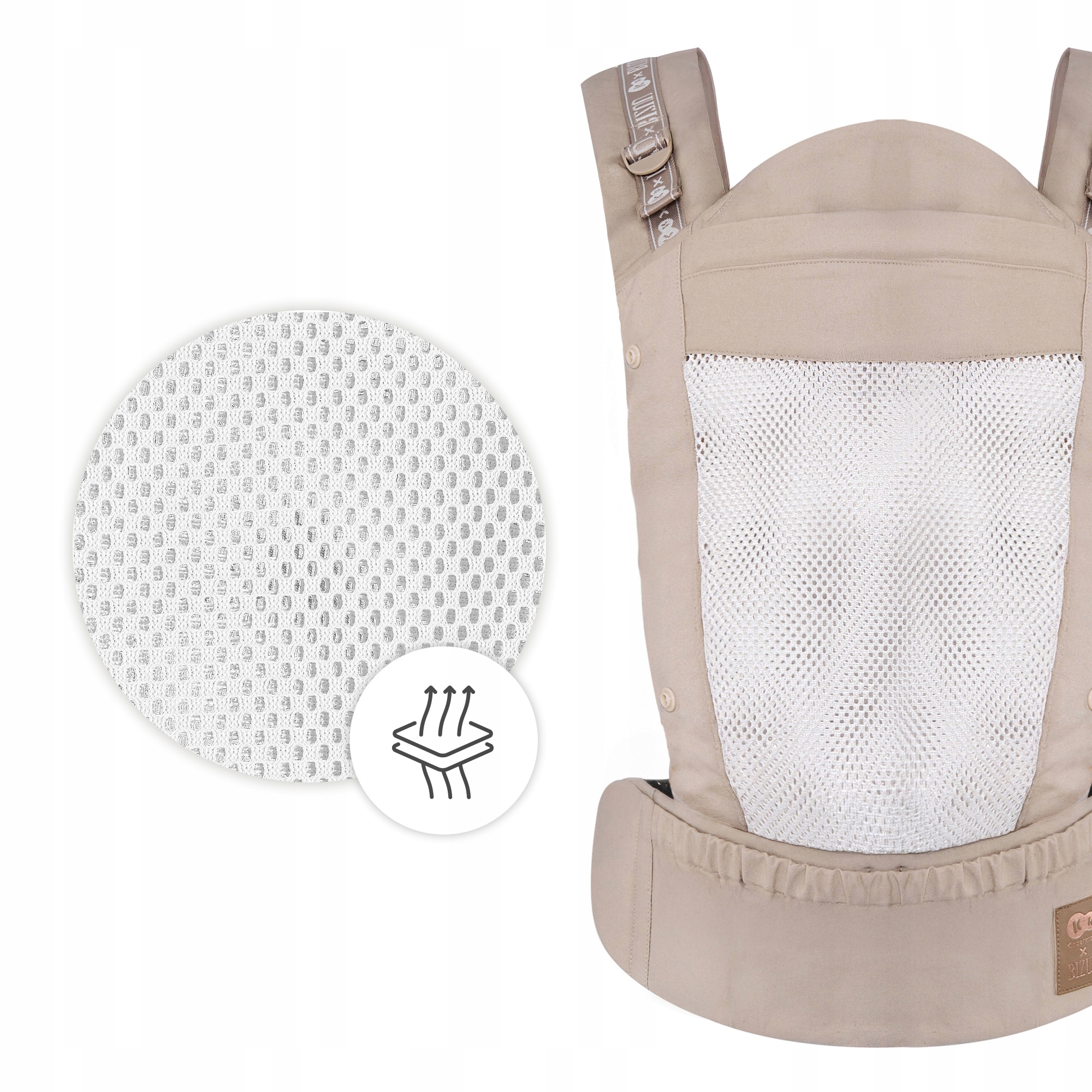 Панель -носитель легко адаптируется к телу даже самых маленьких детей, обеспечивая соответствующую поддержку для головы. Huggy был разработан для нежной кожи малыша - он был сшин из дышащего, неудобного хлопка, который приятен на ощупь, удобный и долговечный.