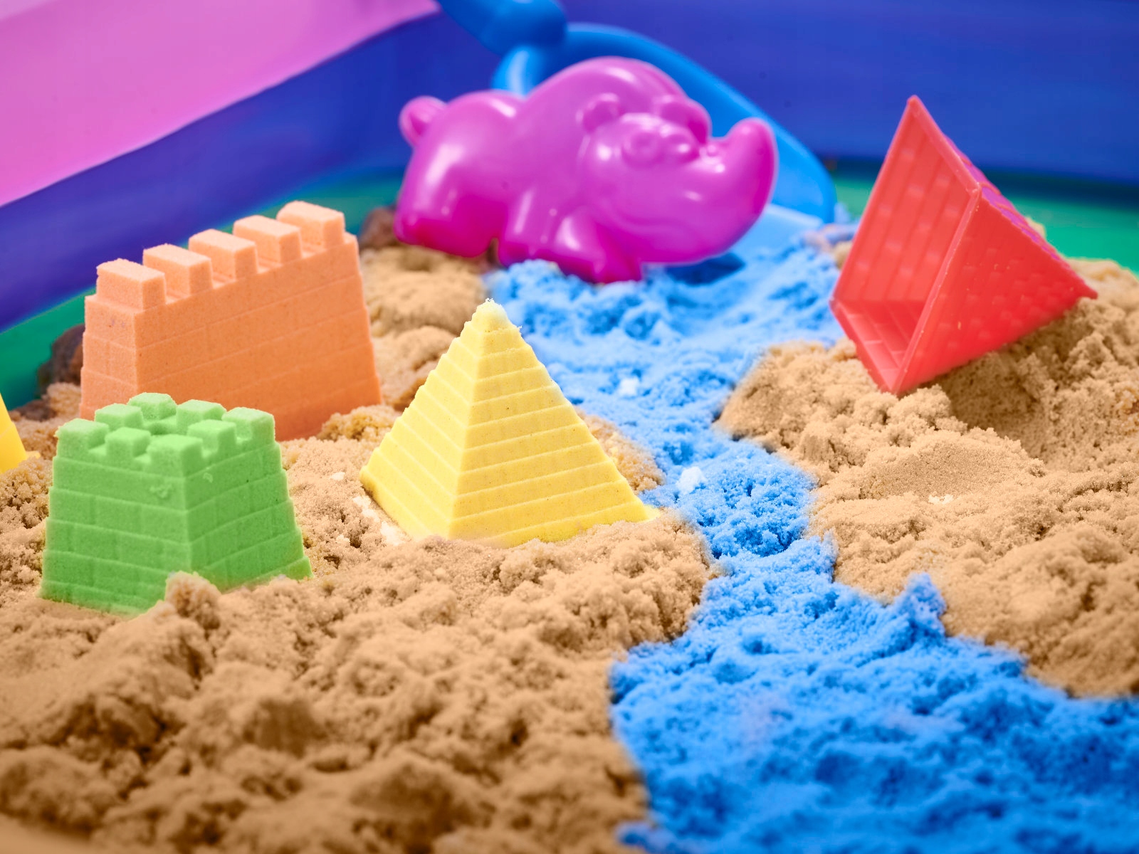 кинетический песок с песочницей и плесенью - это творческая игрушка, которая дает детям много радости и развивает свои ручные способности.