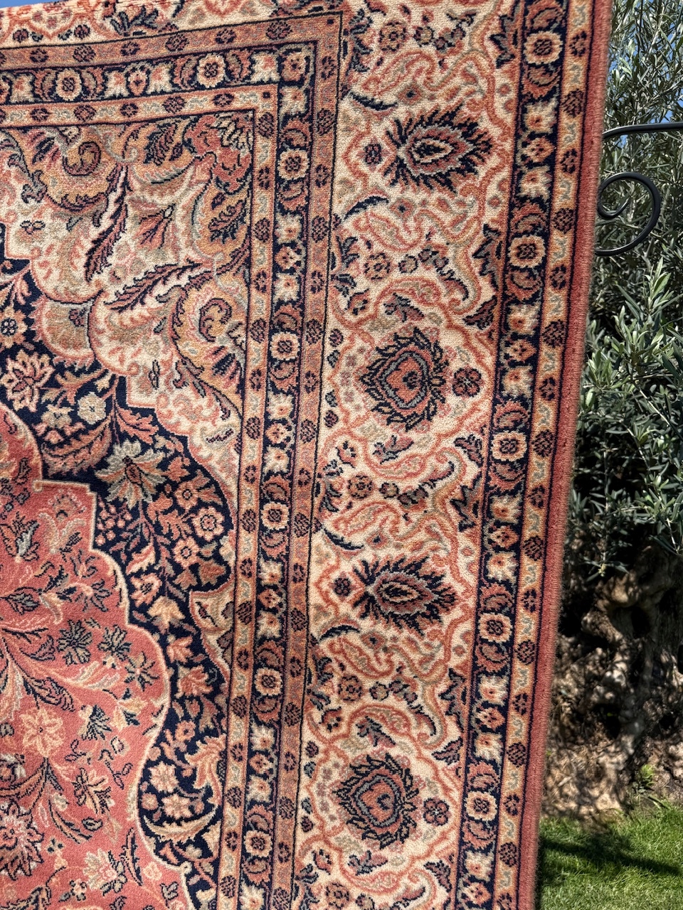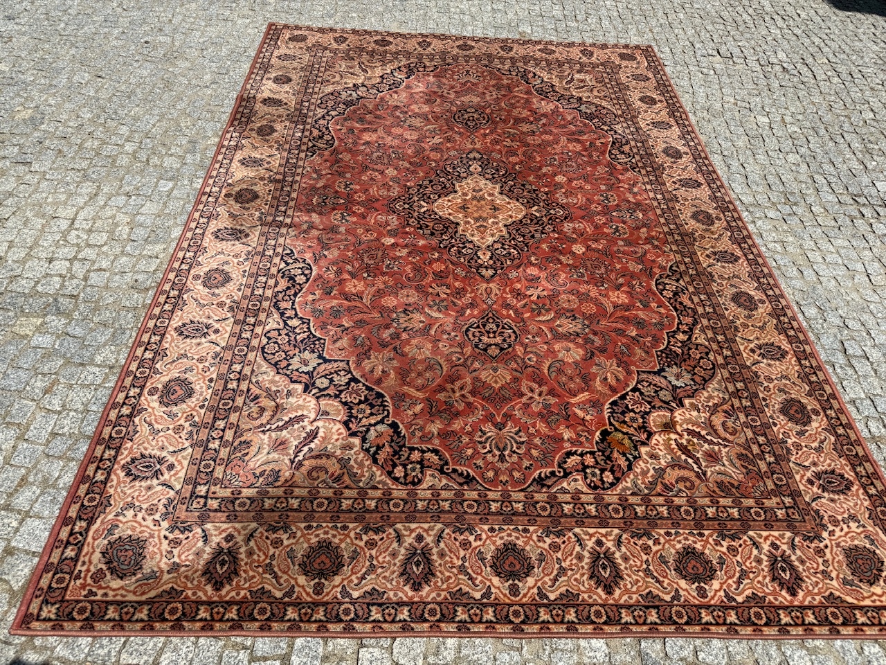 Субъект: шерстяной коврик с персидским узором. Имеет сертификат ковров OSTA. В галерее это стоило 1700 евро или около 8000 человек. уникален из -за его рисунка, а также цвета. Это очень высокий коврик. Универсальные узоры вызывают, что этот ковер подходит для многих интерьеров.