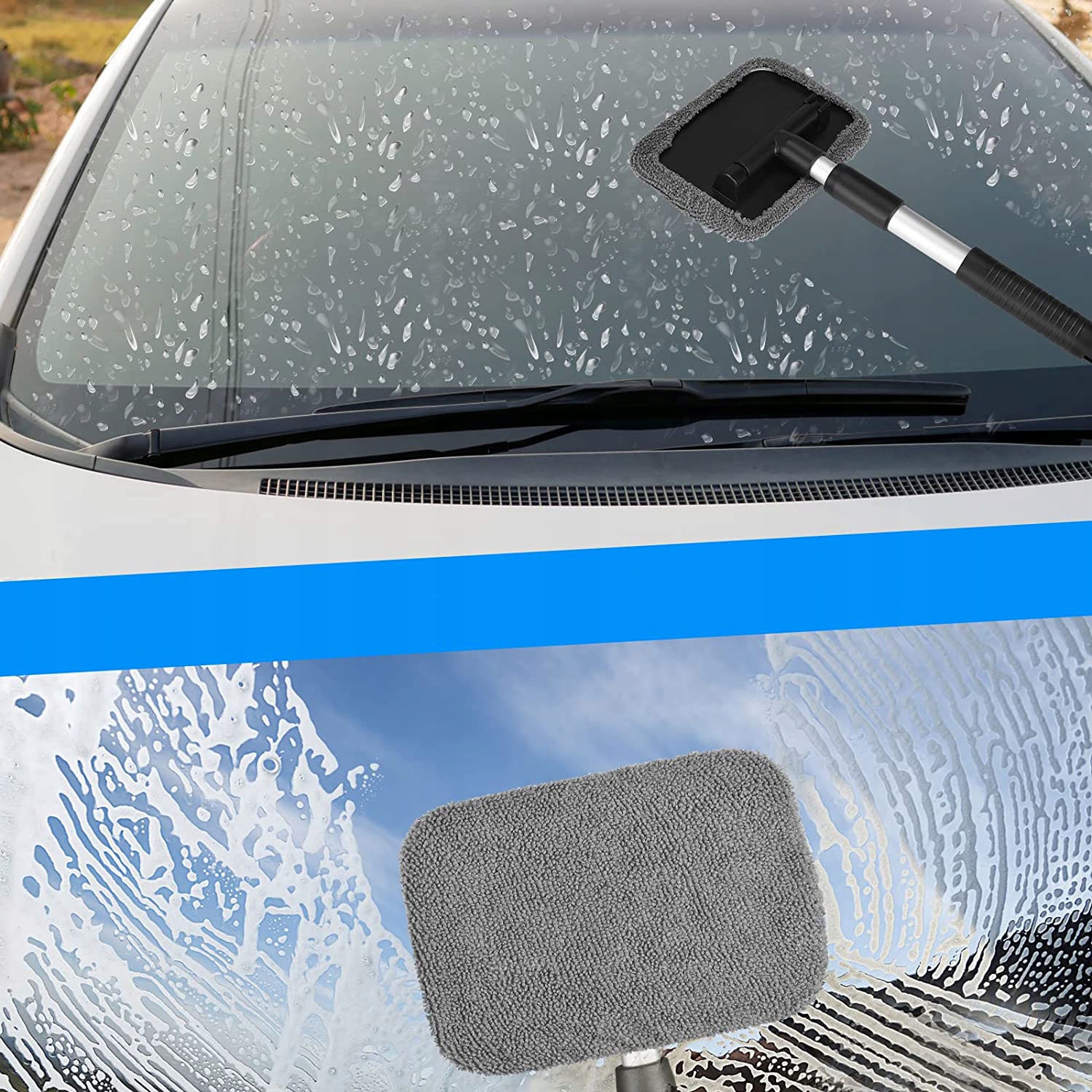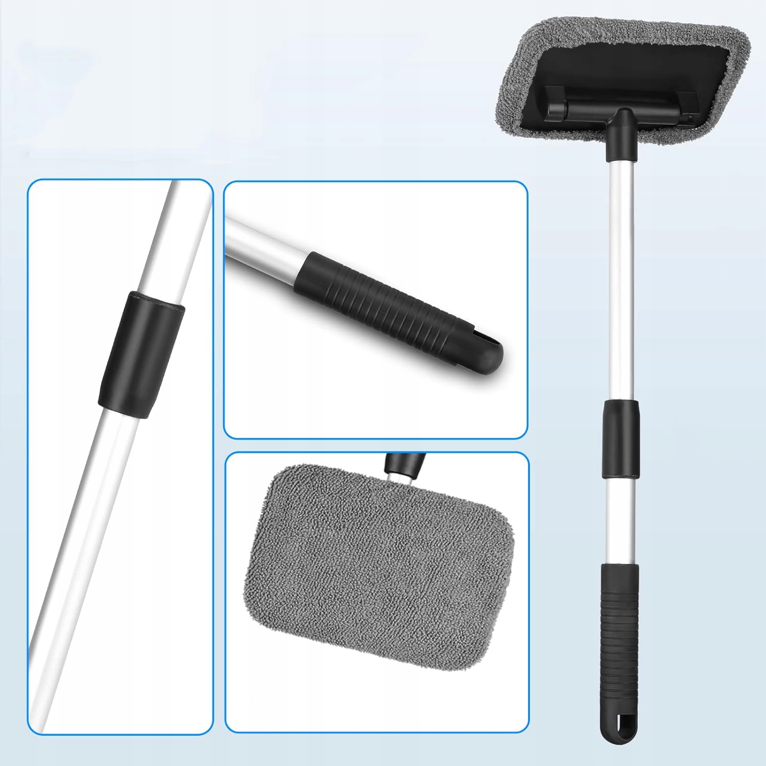 🍀 Быстрая и легкая очистка лобового стекла автомобиля, чистка внутреннего и внешнего стекла автомобиля без усилий. Больше нет боли в спине. Благодаря очень длинной расширенной ручке и вращающейся головке легко добраться до того, что автомобильные окна Используйте щетку для очистки автомобилей, едва доступные окна дома, телевизор, стеклянные экраны, стеклянные зеркала и даже полы. Подходит для пассажирских автомобилей, грузовиков, внедорожников и туристов всех размеров. Подушка микрофибры с хорошей способностью поглощения воды