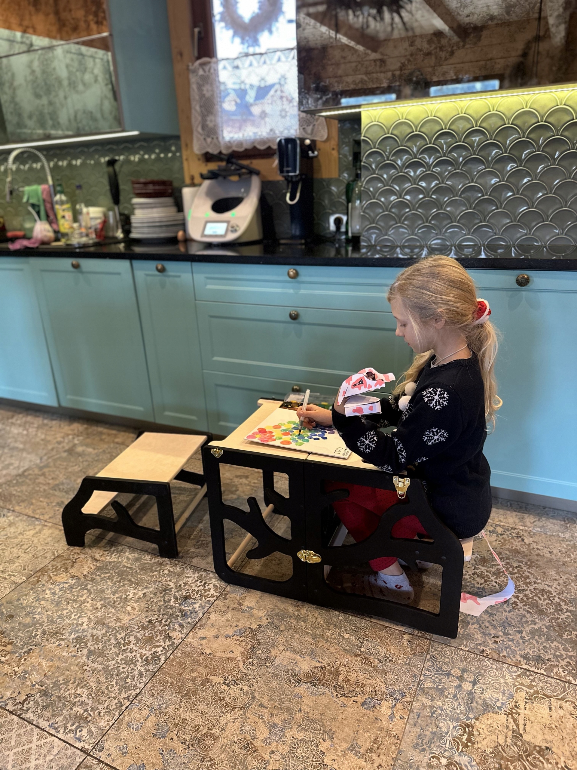 KITCHEN HELPER помічник для дітей, парта та стілець 5в1, лакований чорний