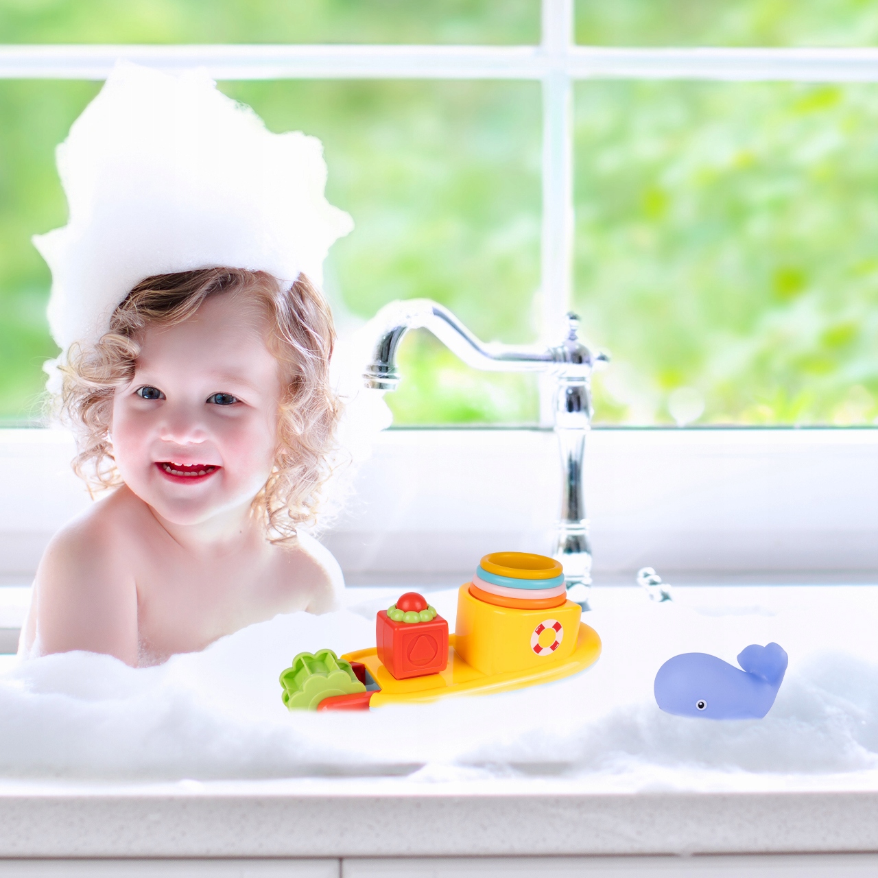 кит съемный от лодки, чтобы дети могли играть с ним отдельно. Они могут погружаться и появляться в воде, что делает ванну более захватывающей