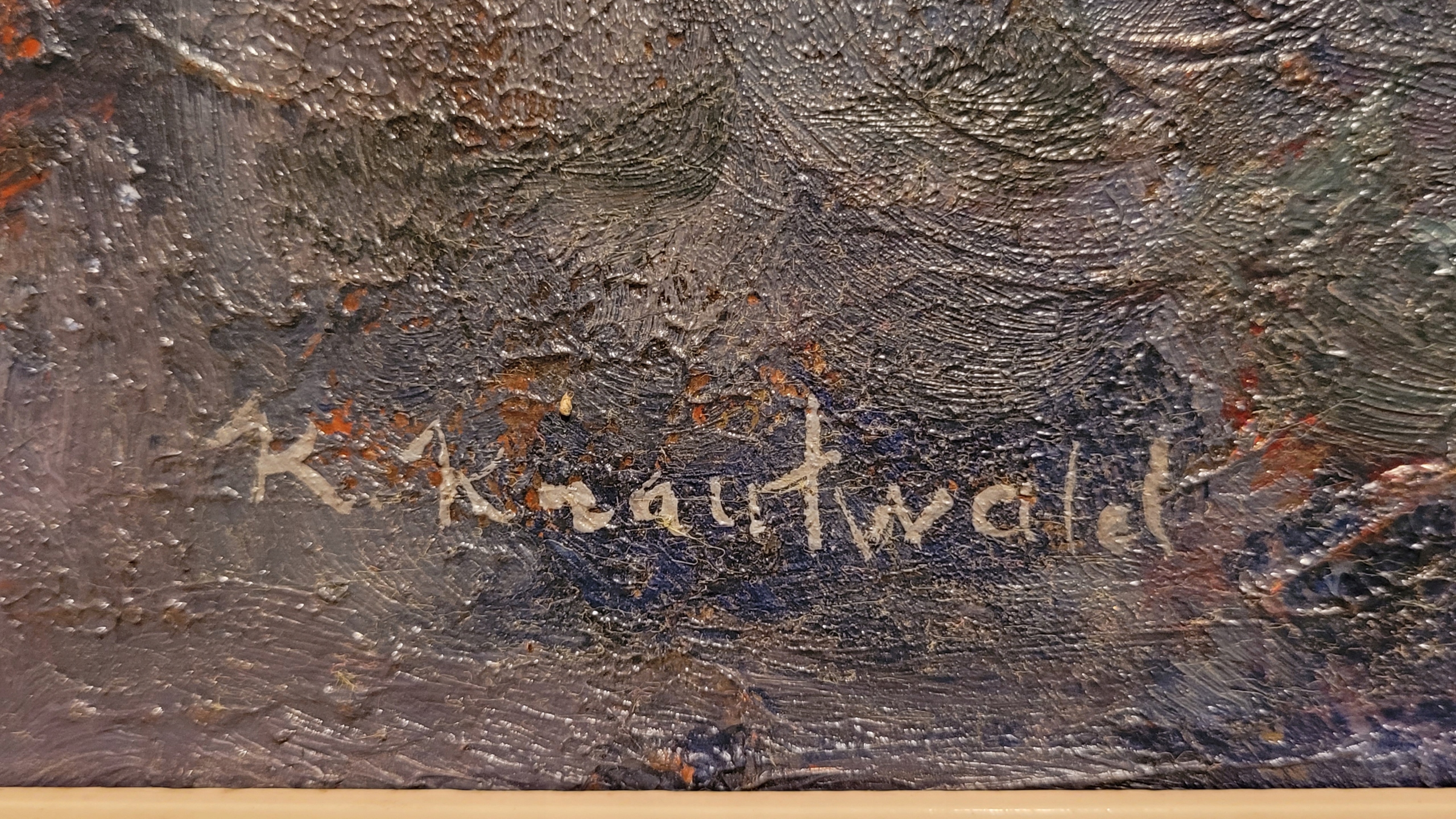 Kjeld Krautwald (1919 - 2000) датский. Перечислены в ArtPrice, Lauritz, Bruun Rasmussen и многих других порталах и аукционных домах в мире. Он продемонстрировал необычайные навыки в захвате деталей, динамики и атмосферы сыгранных пейзажей. Известный своими очаровательными картинами, показывающими местные пейзажи, но в своей работе он также достиг мотивов из других стран. Горные пейзажи занимают много места в его достижениях. Покупатели картин К. Кратвальд рассматривают свои работы как хорошее место капитала.