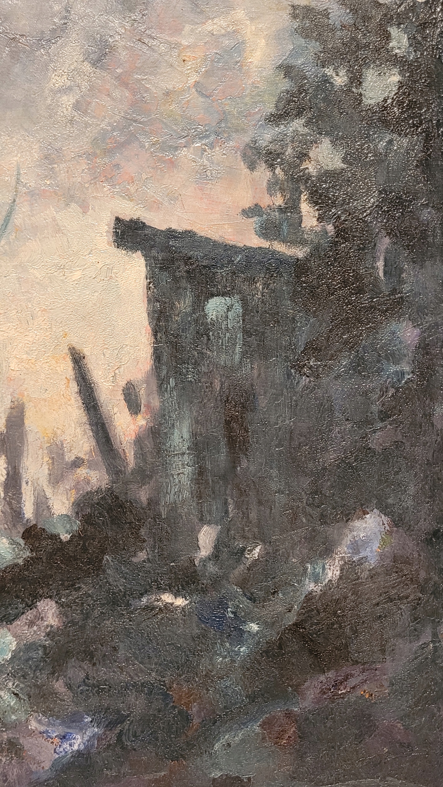 Тема продажи - красивая, старая нефтяная картина "blaa morgen".