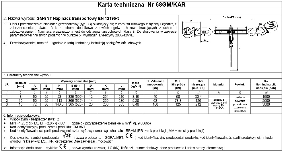 Транспортный натяник класса 8 13 мм EN 12195-3