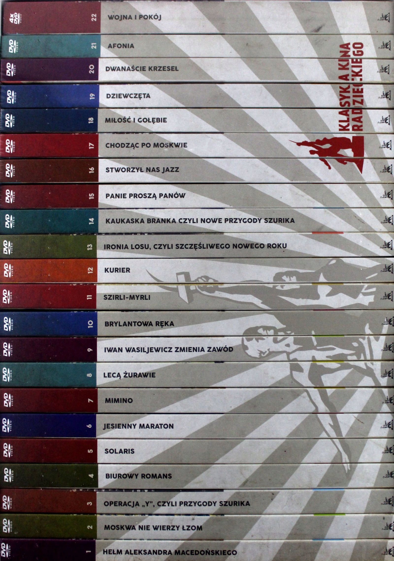 Смотрите коллекцию лучших советских фильмов, собранных вместе. Сборник состоит из 22 книг с фильмами на DVD. В нем собраны киноработы самых выдающихся и интересных творцов советского кино, таких как Георгий Данелия, Михаил Калатозов, Андрей Тарковский и Сергей Бондарчук.