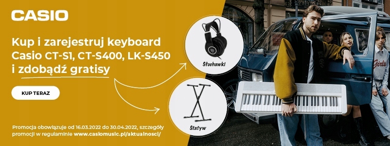 Покупать и зарегистрировать этот инструмент с 16.03.2022 до 30.04.2022, и вы получите бесплатные наушники Joe HP-280 и штатив под клавиатурой NKS K-13-Значение бесплатного бесплатного бесплатного-PLN 198 !! После регистрации инструмента дистрибьютор Casio свяжется с вами и определит условия для доставки вышеуказанных халява.