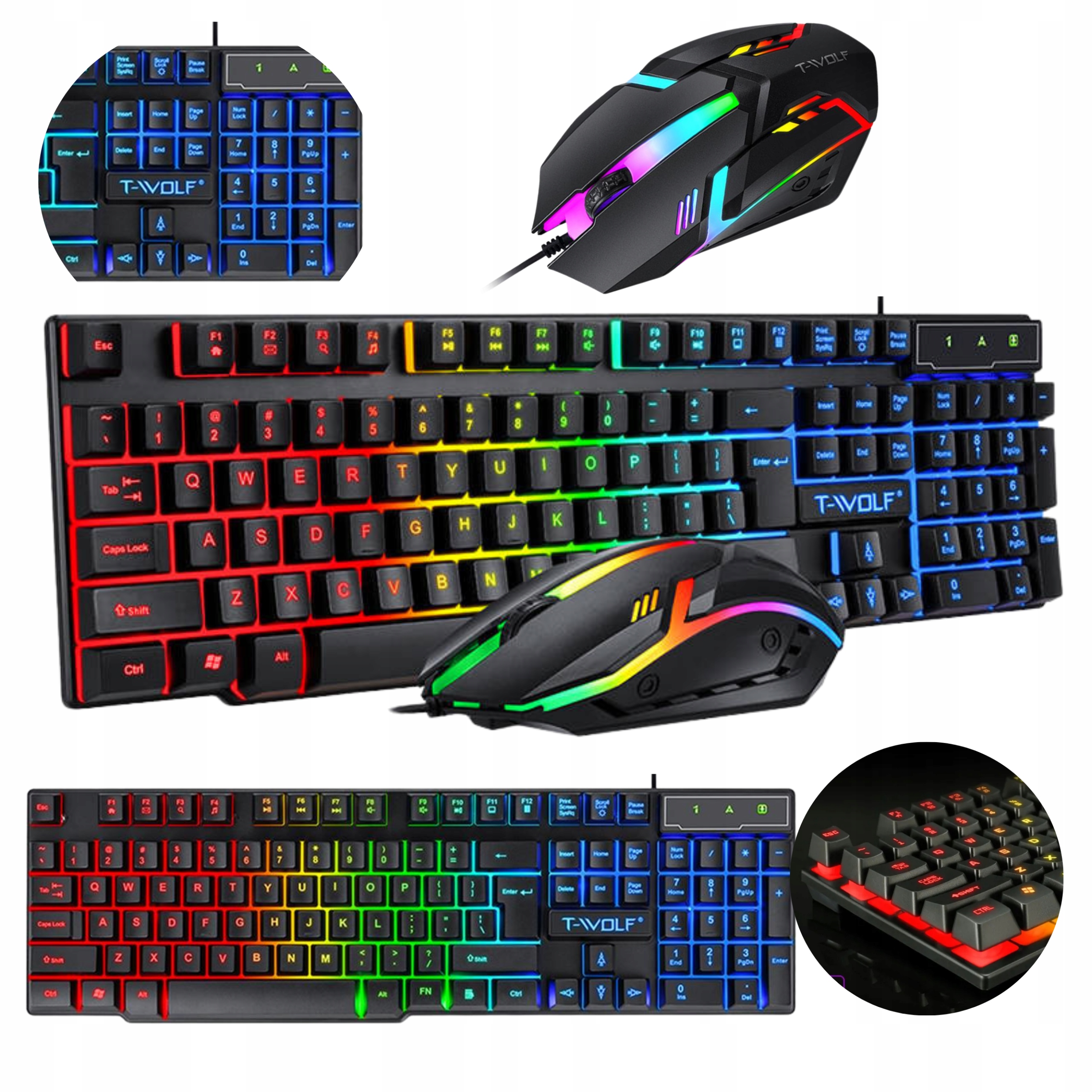 ✅ Освещенная клавиатура для игроков T-Wolf TF200, включенных в светодиодную мышь