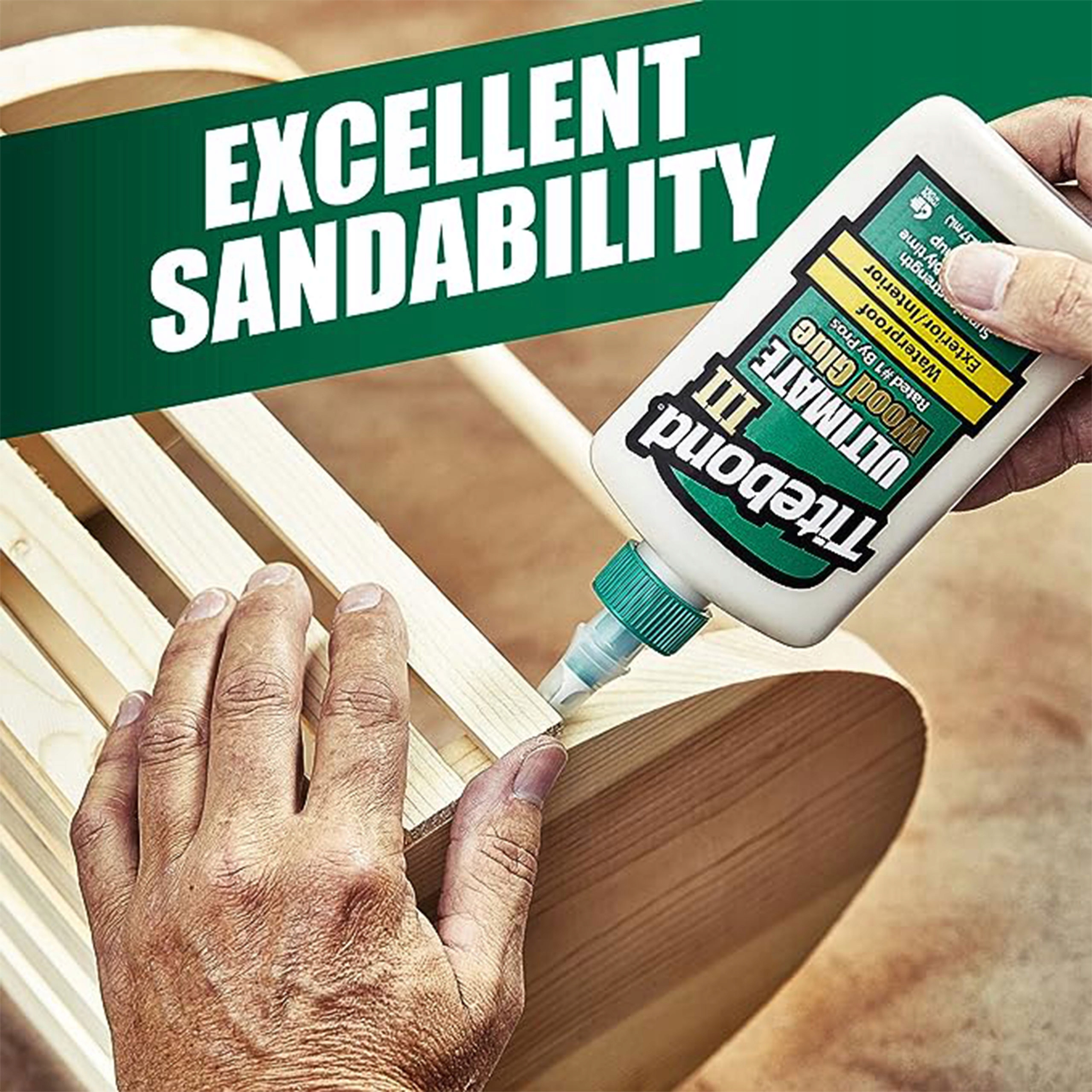 Titebond III — специальный клей, предназначенный для дерева, способный заменить полиуретановые клеи, которые, несомненно, более эластичны, но и труднее удаляются с инструментов и рук.