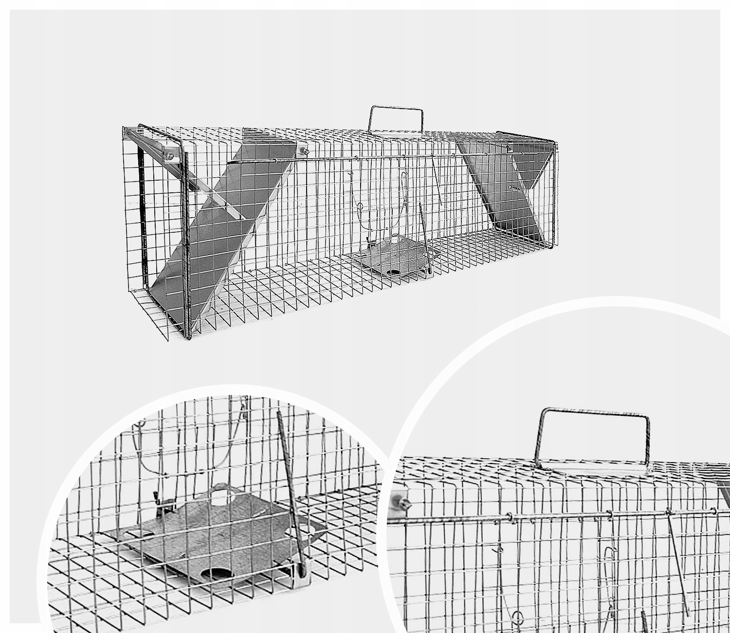 Живоловка изготовлена из высококачественной оцинкованной стали с повышенной коррозионной стойкостью. Толстые стальные проволоки армированы специальной сваркой, прочность которой значительно больше, чем требуется для поимки животных, для которых предназначена ловушка.