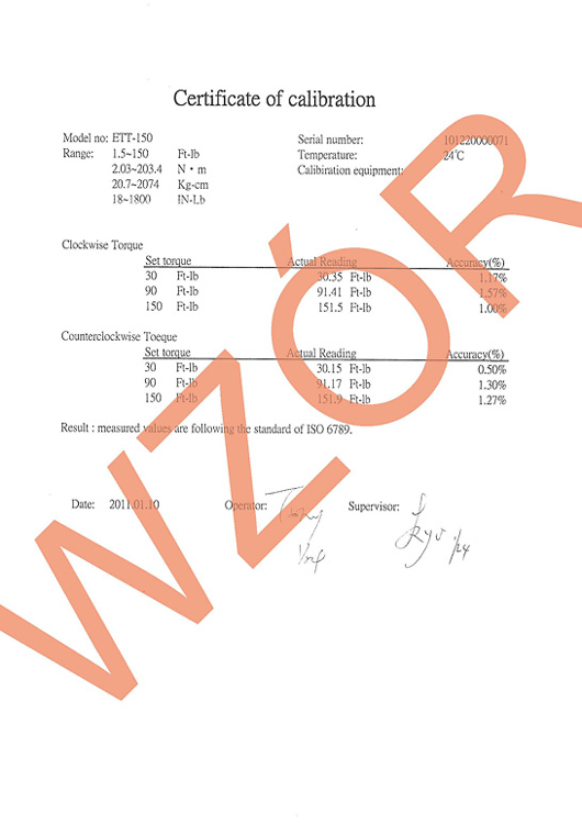 - Сертификат заводской калибровки (индивидуальный для каждого ключа, с указанием серийного номера ключа)