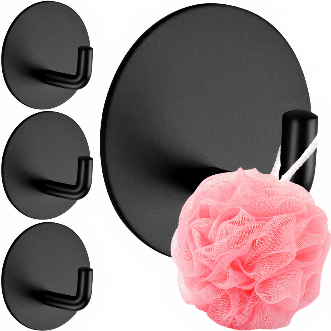 Комплект состоит из четырех одинаковых черных самоклеящихся вешалок.
