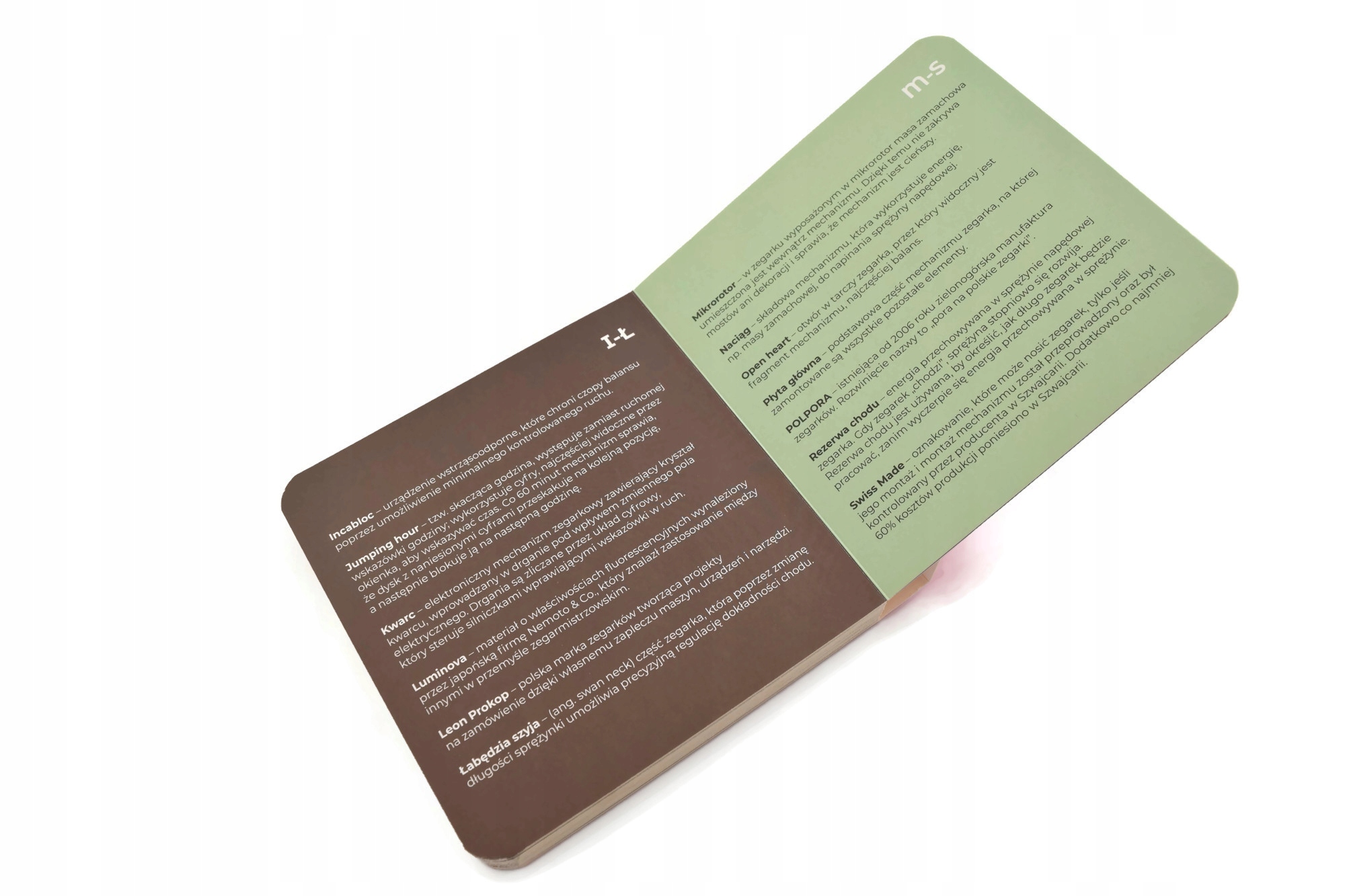 Будущие коллекционеры часов научатся, среди прочего: что такое лебединая шея и конверт. И действительно ли часы могут показывать фазы Луны? В книге 40 страниц, а в конце есть словарь терминов, объясняющий все термины, встречающиеся на предыдущих страницах. Благодаря этому совместное чтение означает и совместное получение знаний в области часового дела – как для ребенка, так и для родителя.