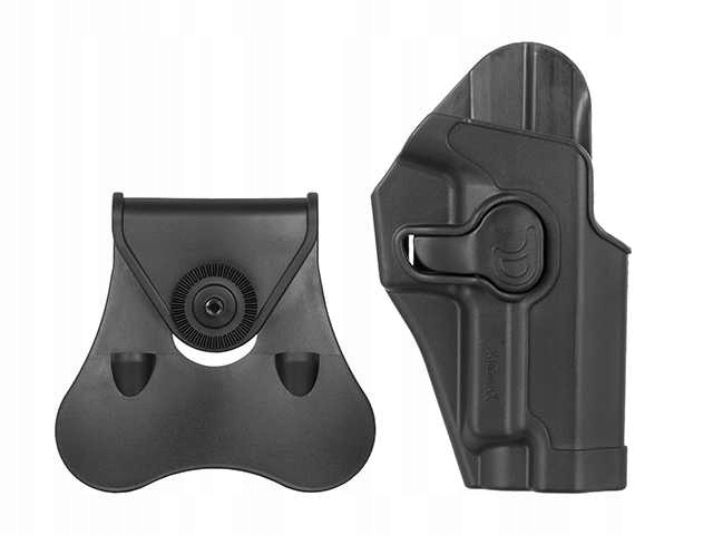 Кобура Amomax для Sig Sauer P220, P226, P229 — черная (AM-S226G2) — кобура, предназначенная для правшей, изготовленная из высококачественных полимеров. Он очень прочный и устойчив к высоким температурам. Благодаря мягкому силиконовому плавнику он обеспечивает комфорт и простоту использования и подходит для любого ремня. Еще одним важным преимуществом является небольшой вес изделия (130 г). Кобура оснащена кнопкой безопасности, блокирующей спусковой крючок. Это позволяет быстро вытащить и спрятать оружие, а также предотвращает случайное выпадение пистолета. Входящий в комплект шестигранный ключ позволяет легко регулировать (можно вращать на 360 градусов). Продукт полностью совместим со следующими сериями: серия TM/WE/KWA/KJW P226.