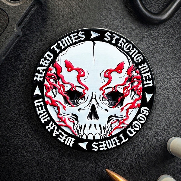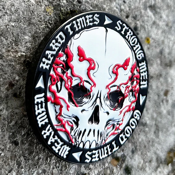 Эта монета служит ежедневным напоминанием о том, что никогда не стоит сдаваться и что трудные времена наступают, чтобы помочь вам вырасти и стать более сильным человеком. Тяжелые времена – Сильные мужчины.