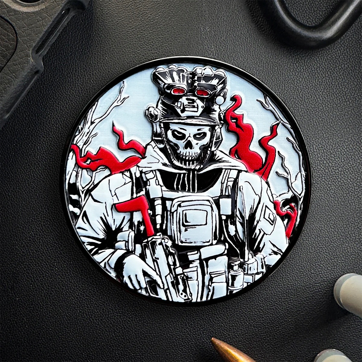 Уникальная коллекционная монета диаметром 5х5 см с мотивом черепа и мотивационной надписью:
