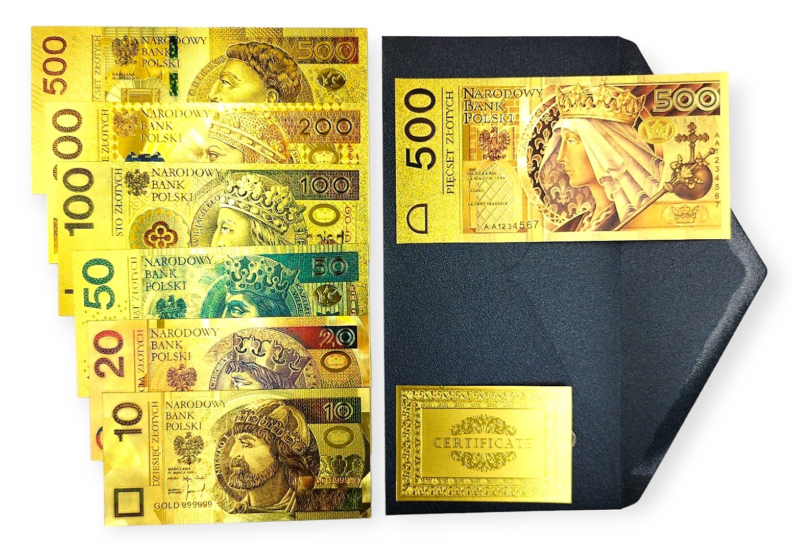 КОЛЕКЦІЙНИЙ НАБІР польських позолочених обігових банкнот Бонус СЕРТИФІКАТ