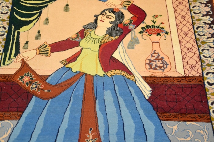 - Ковер б/у и находится в очень хорошем состоянии, учитывая возраст – без пятен, потертостей и дефектов. Тени, видимые на фото, — результат укладки волос.