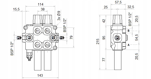 - 2-секционный гидрораспределитель 60л/мин