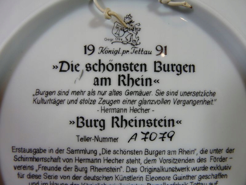 Коллекционная тарелка из лимитированной серии «Самые красивые замки на Рейне»