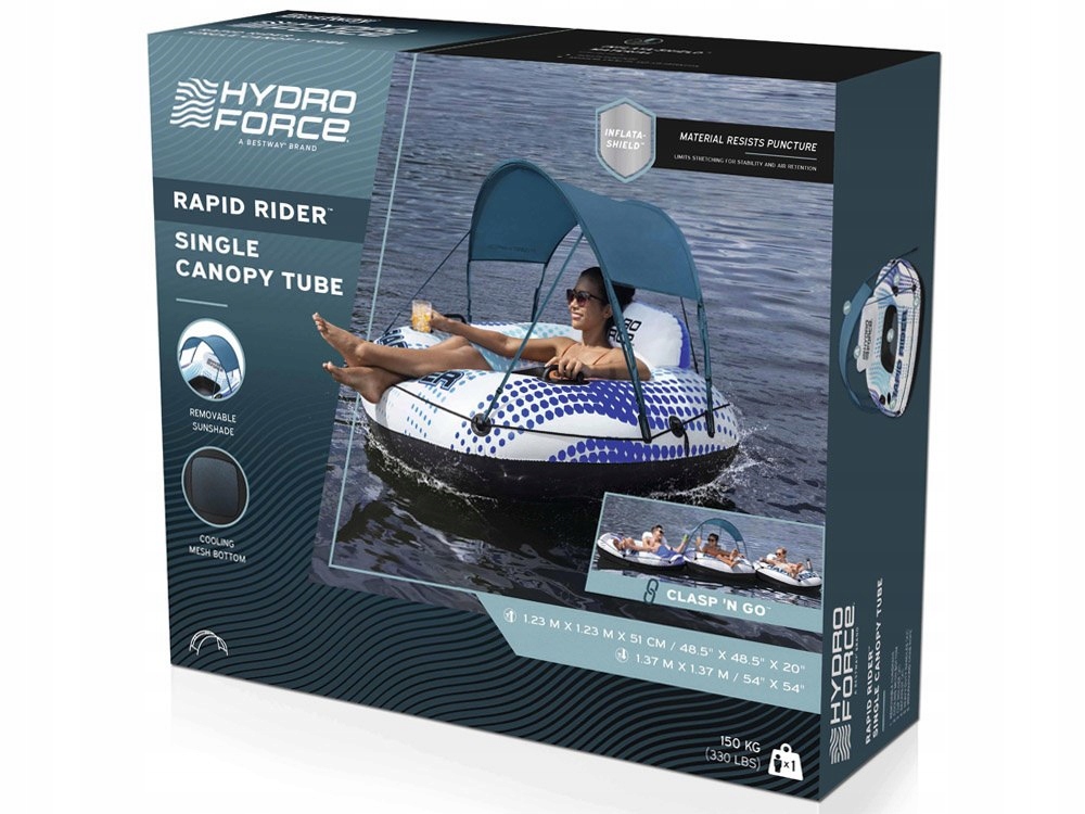 Понтон был изготовлен из ПВХ -пластика. Его максимальная нагрузка составляет 100 килограммов. Сиденье было удобно профилировано и обеспечивает постоянный контакт с водой. В случае повреждения надувной поверхности к набору прикрепляется ремонтное пластырь.