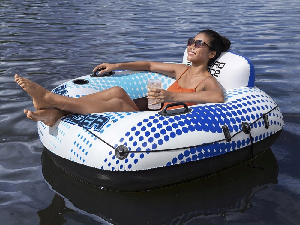 Преимущество понтона, прежде всего, - это крыша, которая обеспечит немного тени в жаркие дни, удобная поддержка и держатель напитков позволит вам полностью расслабиться.