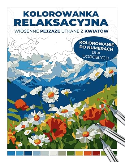 Kolorowanka relaksacyjna | Wiosenne pejzaże utkane z kwiatów