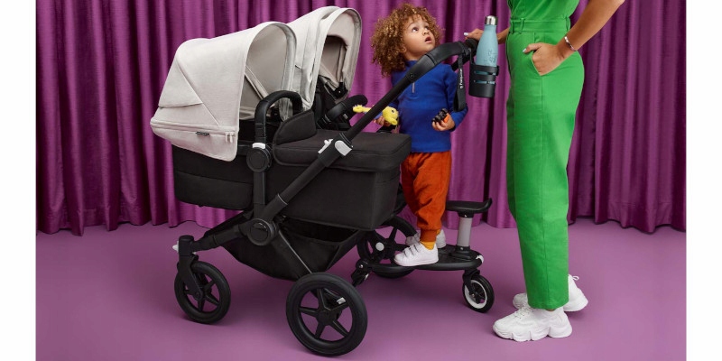 Коляска Bugaboo Donkey 5 Twin — одна из немногих колясок для близнецов, которые позволяют крепить две гондолы рядом друг с другом. Даже в такой конфигурации коляска проходит через большинство стандартных дверей.