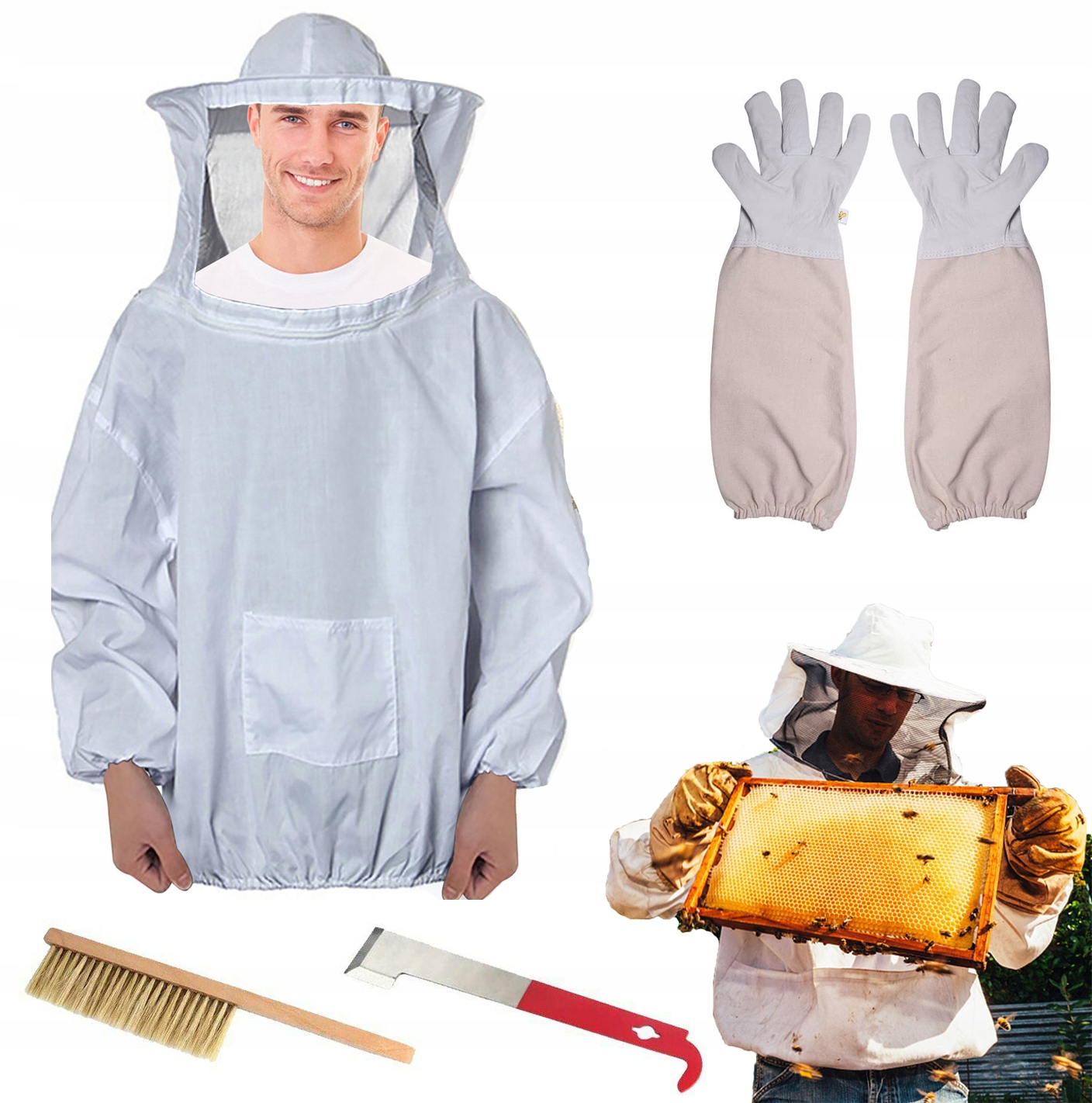 KOMBINEZON PSZCZELARSKI Z KAPELUSZ + RĘKAWICE + SZCZOTKA DO ULI + J. HAK