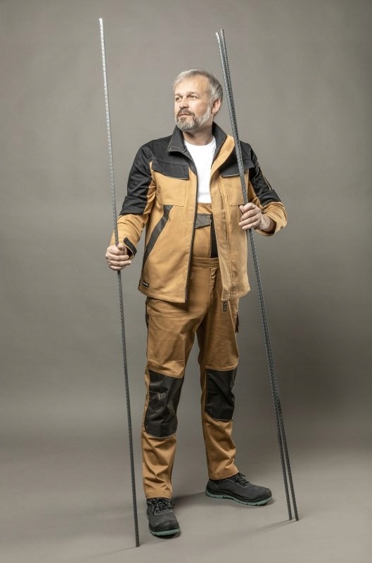Бежевые защитные комбинезоны. Тщательная обработка и качественные материалы обеспечивают высокий комфорт использования. Категория индивидуальной защиты I. Брюки соответствуют стандарту, определяющему уровень эргономики, размерной маркировки и безопасности - EN ISO 340.