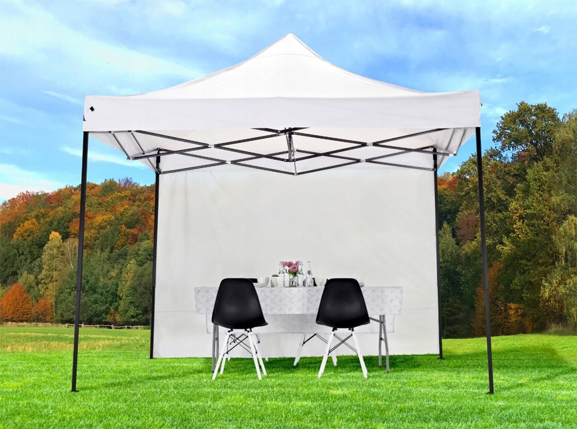 Декоративная белая брезентовая полоса придает складному павильону неподвластную времени элегантность, одновременно визуально подчеркивая высокое качество павильона.
