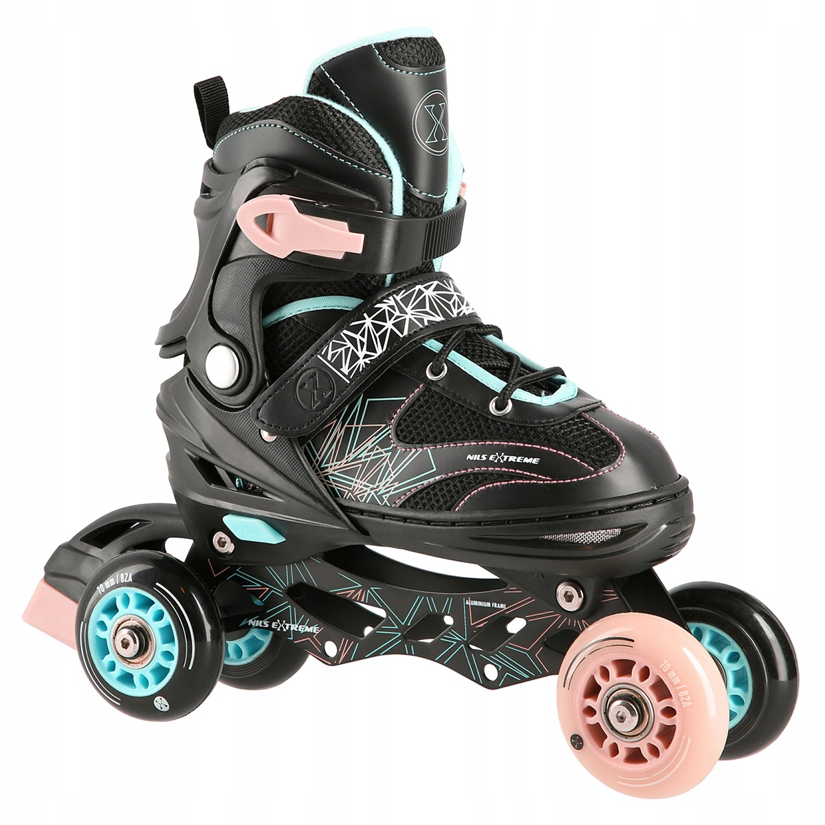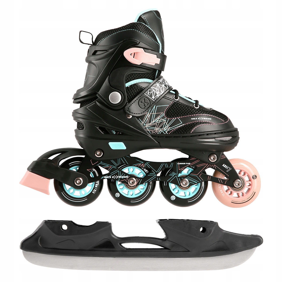 Роликовые коньки NH18192 – это настоящее удовольствие от катания. Благодаря возможности перемещения дополнительного колеса на заднюю ось роликовые коньки функционально трансформируются в роликовые коньки. Данное решение поможет самым юным фигуристам сделать первые шаги в этом виде спорта. В свою очередь, установка дополнительного колеса на переднюю ось превращает изделие в роликовые коньки. Роликовые коньки оснащены специальными алюминиевыми полозьями и тормозом, что обеспечивает безопасность во время катания. В свою очередь, колеса и подшипники класса ABEC7 позволяют снизить сопротивление качению, то есть ускорить езду.