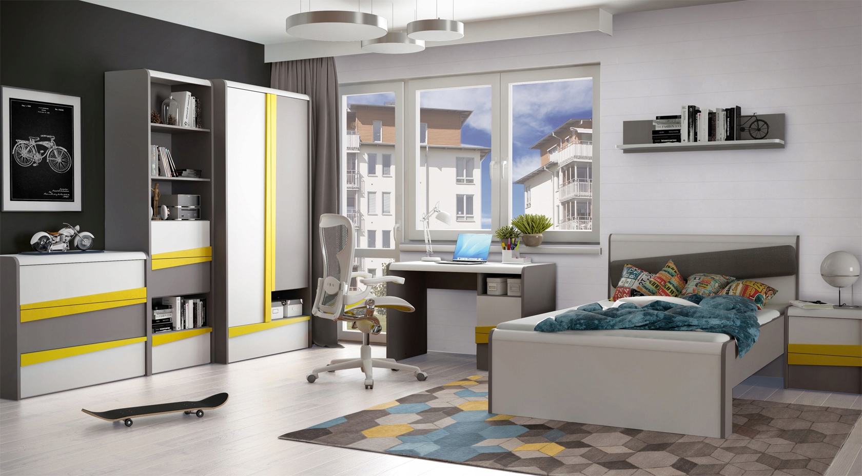 Коллекция DIVERTIDO от производителя Forte представляет собой комплект подбор мебели для обустройства детской или подростковой комнаты. . Оригинальные формы выполнены в бело-сером декоре, а их нестандартный стиль подчеркнут еще и желтыми вставками. В коллекцию входят, среди прочего: письменный стол, шкаф и комоды. К кровати можно приобрести тумбочку. Современная и стильная мебель DIVERTIDO непременно найдет применение в современном дизайне интерьера комнаты подростка, а прочные материалы гарантируют долговечность на долгие годы.