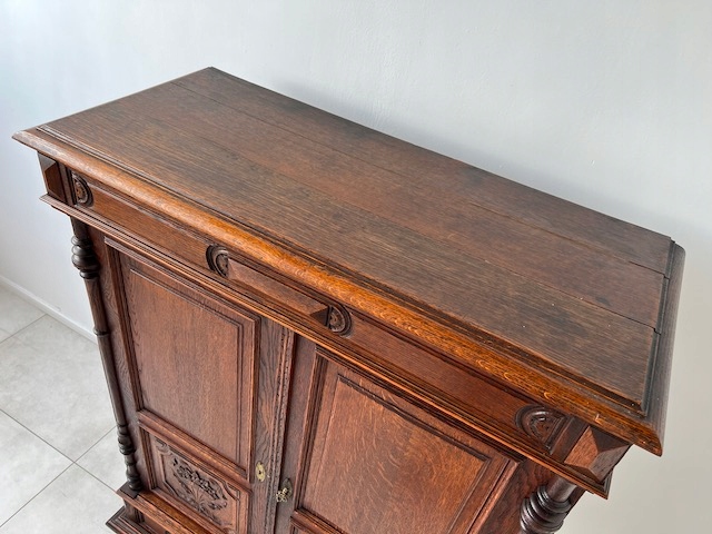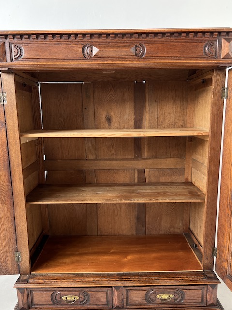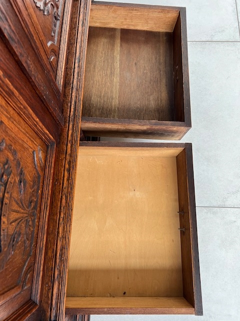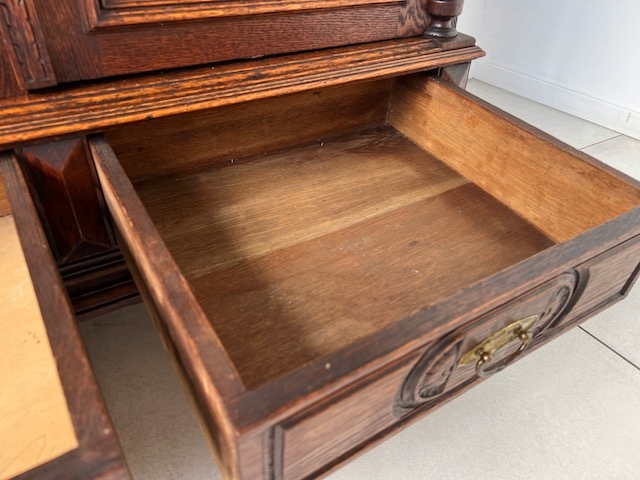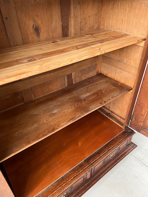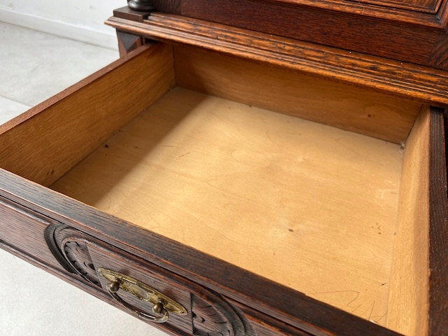 Дубовая бельевая полка. Он изготовлен из массива дерева. Гламурный; красиво оформлен. Столешница немного суховата. Кроме этого, других повреждений и дефектов нет. Имеет характерные следы использования. Замок функциональный, в комплекте есть ключ. Внутри две полки. Любой другой. В нижней части есть два вместительных ящика. в стиле Людвика. Он разобран и доставлен новому владельцу в разобранном виде. Полка для белья готова к установке.
