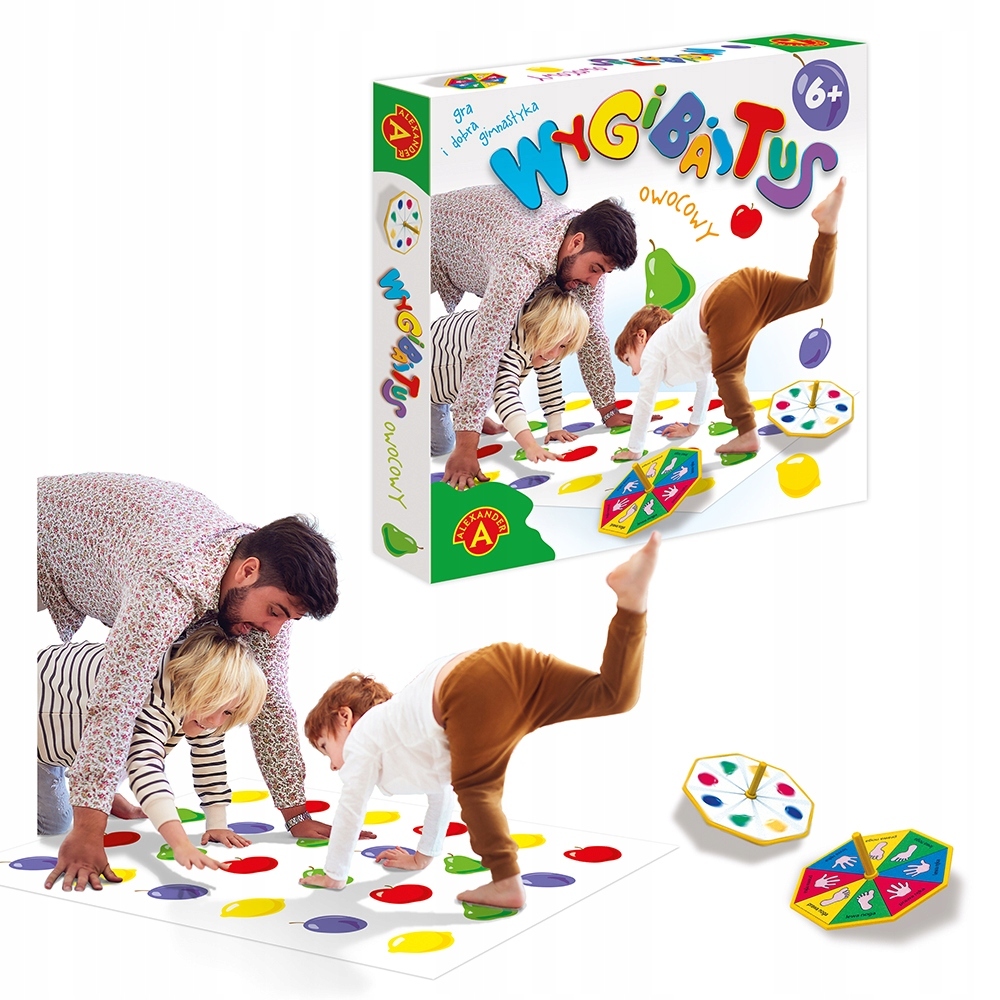 Игра ловкости фруктов и фруктов и фруктов - игра движения, в которой каждый игрок играет со всем телом. В зависимости от указаний на Tap Shield игроки должны поставить ноги и руки в нужные места на доске. Игрок, который не может занять указанное место на доске, падает. Тот, кто счастливо нарисовал и был самым гимнастическим победами. Игра является отличным развлечением для детей и взрослых, обеспечивает много эмоций и подсказок для гимнастических упражнений.